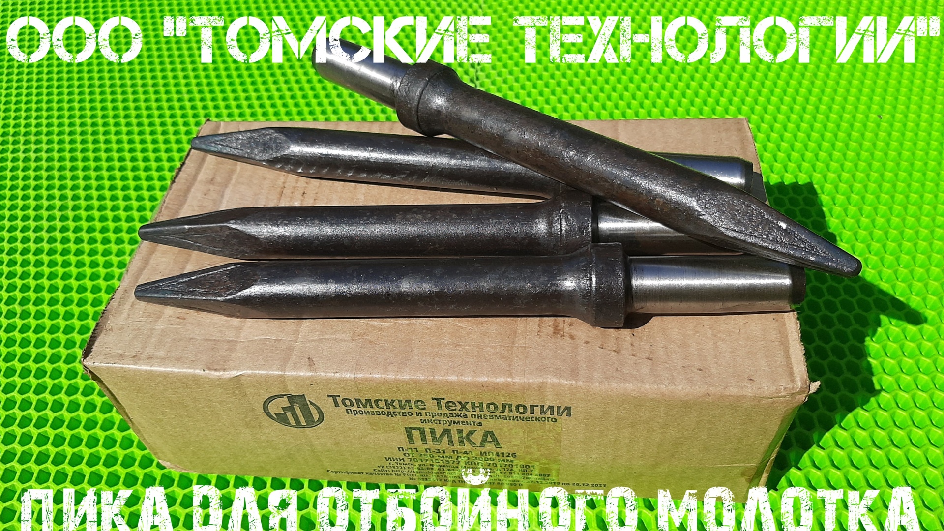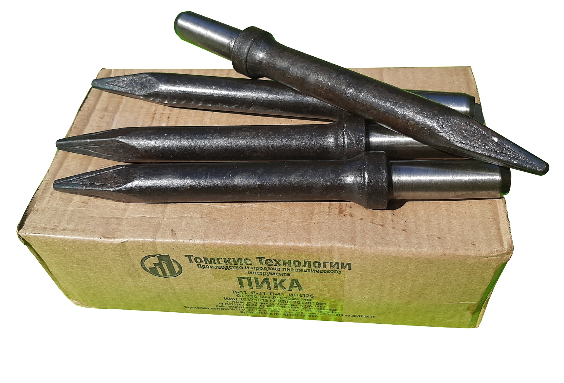 ООО "Томские Технологии" специализируется на изготовлении сменного инструмента к отбойным молоткам высокого качества по доступным ценам. Ассортимент нашего производства - это пики П-11 длиной от 290 мм до 3-х метров, зубила П-31 длиной 300 - 3000 мм, лопатки П-41. Имеются сертификаты соответствия.