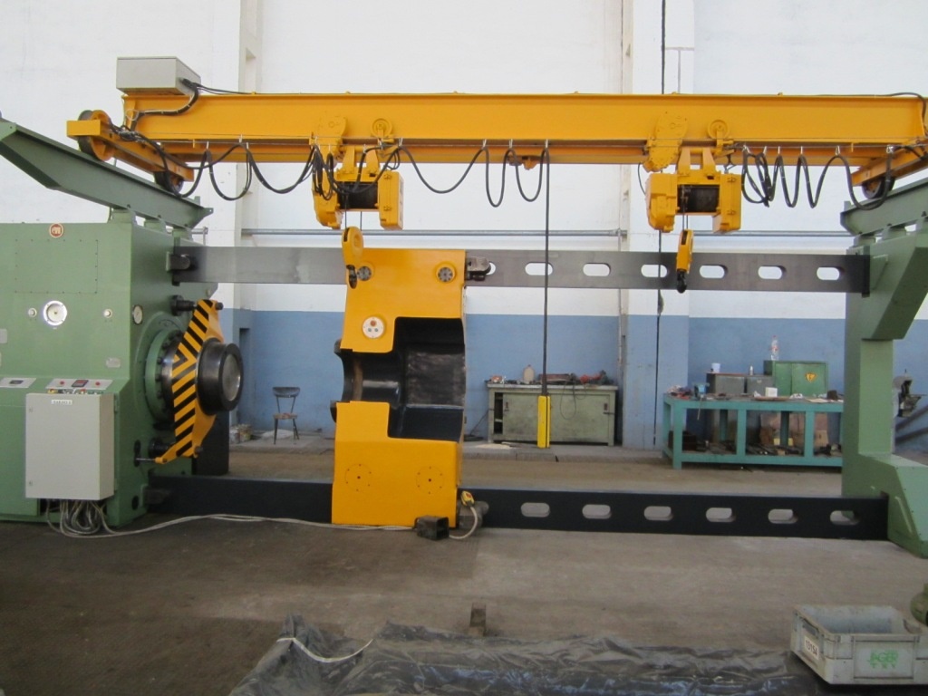Для загрузки и поддержания изделий пресс снабжен механизмом загрузки в виде мостового крана с двумя электротельферами. Прессы оснащены самопишущим прибором для записи диаграммы давления по пути запрессовки в прямоугольных координатах. Гидравлические цилиндры, насос и гидроаппаратура смазываются рабочей жидкостью - маслом и не требуют специальных смазочных устройств. Подшипники упорной траверсы, тележки, а также направляющие втулки смазываются густой смазкой через пресс-масленки шприцем, входящим в комплект пресса. Редуктор привода перемещения упорной траверсы смазывается заливкой масла в корпус редуктора.