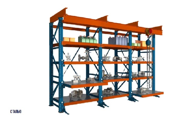 Стеллажи с полками частичного и полного выдвижения для хранения оснастки, инструмента и других тяжелых предметов