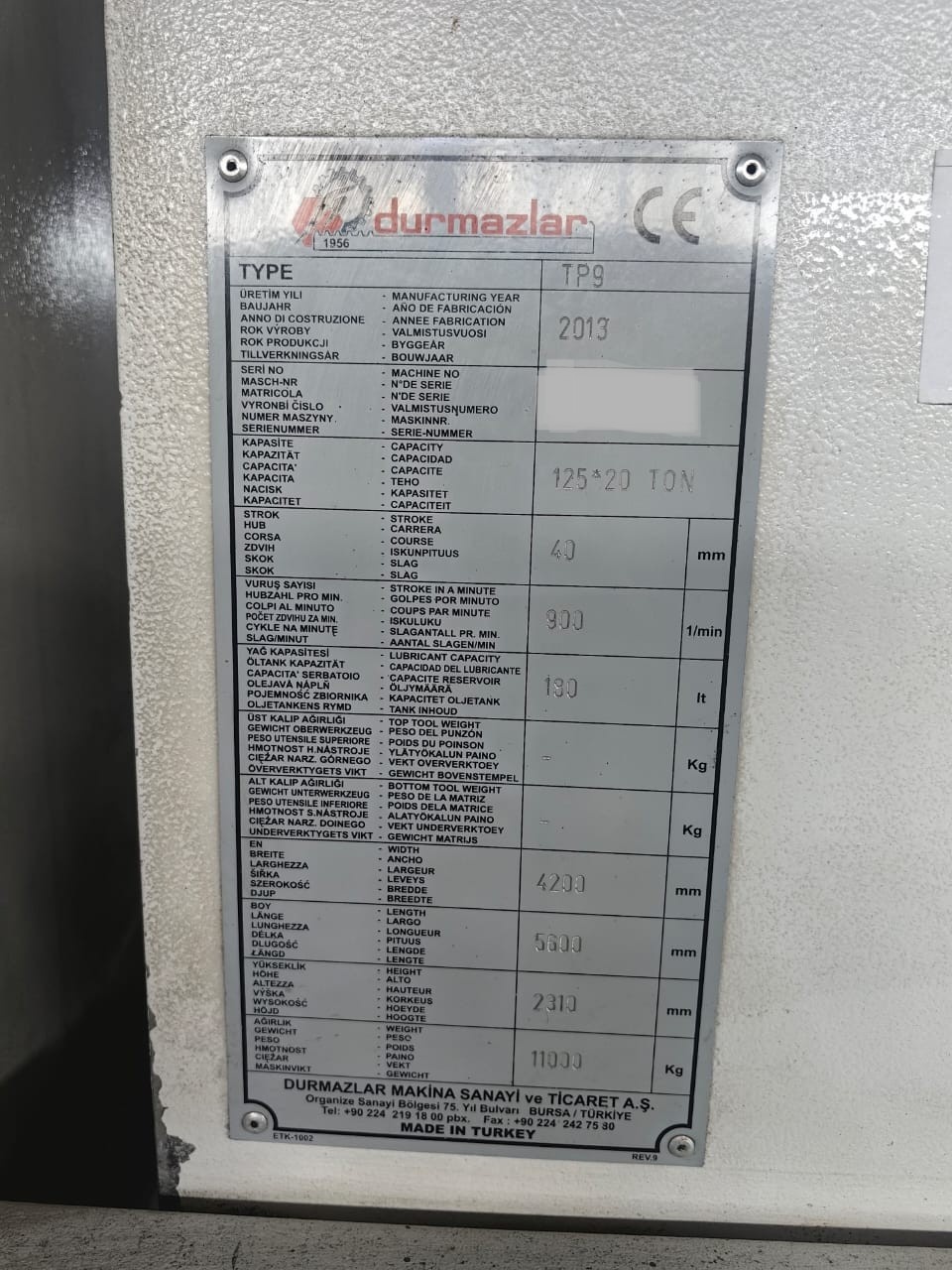Координатно-пробивной пресс Durma ТP9 с ЧПУ Б/У - Продам в Нижнем Новгороде