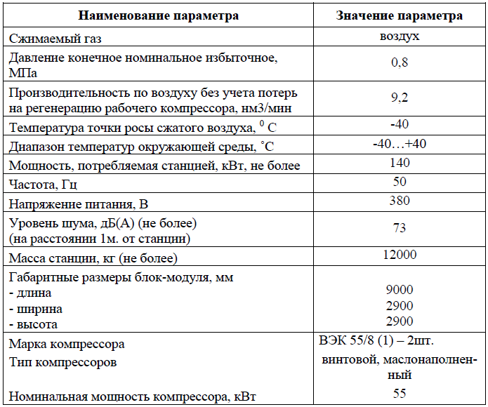 В качестве машины для сжатия газа на станции применяются промышленные воздушные компрессоры ВЭК 55/8 (1). Компрессоры оснащены всеми системами, необходимыми для их нормальной работы.