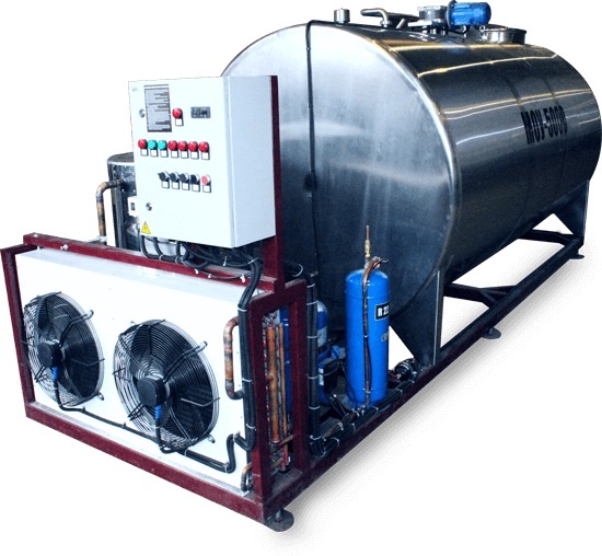 Установка используется на молочно-товарной ферме для охлаждения парного молока. Смонтирована одним блоком и полностью готова к работе. - Внутренняя и внешняя стенки молочного танка выполнены из пищевой нержавеющей стали марки AISI-304. Все соединения сварены аргонно-дуговой сваркой с поддувом с двух сторон; - Толщина внутренней стенки 2 мм, внешней обшивки 2 мм (AISI 304) ; - Испаритель изготовлен из нержавеющей стали, 3 +1 мм. Соединение испарителя микроплазменной сваркой; - Теплоизоляция выполнена из экологически безопасного теплоизоляционного материала - пенополиуретана, толщина 50 мм; - Слив обеспечивает полное опорожнение молочного танка; - Установлена вращающаяся дисковая моющая головка из нержавеющей стали AISI 304; - Выходной патрубок для продукции - резьбовое ДУ40, сварка орбитальной сваркой (Orbitec, ЧПУ, Germany) ; - Верхнее исполнение: люк на 500 мм, открывающаяся крышка на газлифтах, поворотная крышка; - Компрессор Bitzer(Germany) , Maneurop (Danfoss, оригинальные компрессоры) c тепловой защитой трехфазных компрессоров; - Контроллер для управления системы охлаждения и мешалки - EVCO (Италия) . Изготовиим молокоохладители необходимого Вам объема и конструкции.