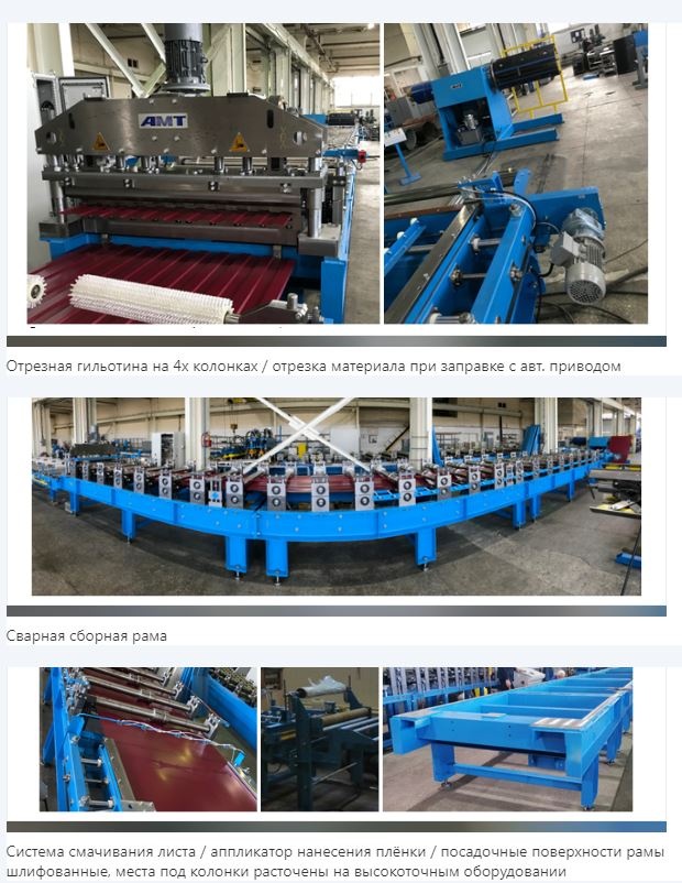 Основные особенности: максимальное количество клетей; посадочные поверхности рамы – шлифованные; места под колонки расточены на высокоточном оборудовании; максимальный диапазон толщин прокатываемого металла; легкость в переналадке; гарантированное качество изделия во всем диапазоне толщин; скорость профилирования до 40 м/мин.; роликовые отрезные ножницы с приводом от мотор-редуктора; система смачивания полосы; аппликатор нанесения плёнки (опция); отрезная гильотина с приводом от мотор-редуктора на четырёх колонках.