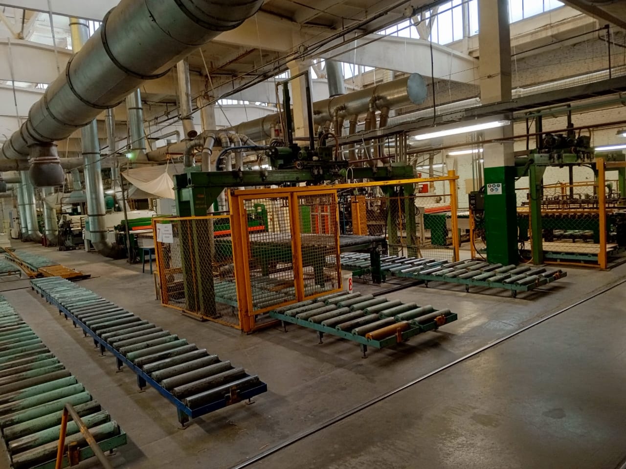 Линия U-образного исполнения по нанесению полиэфирных грунтов вальцовым методом с финишной лаконаливной машиной УФ-отверждения и автоматической загрузкой/выгрузкой.