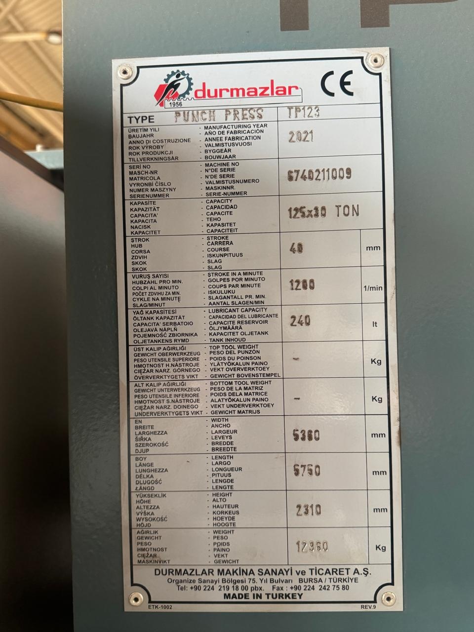 Координатно-пробивной пресс Durma TP123 Б/У - Продам в Магнитогорске