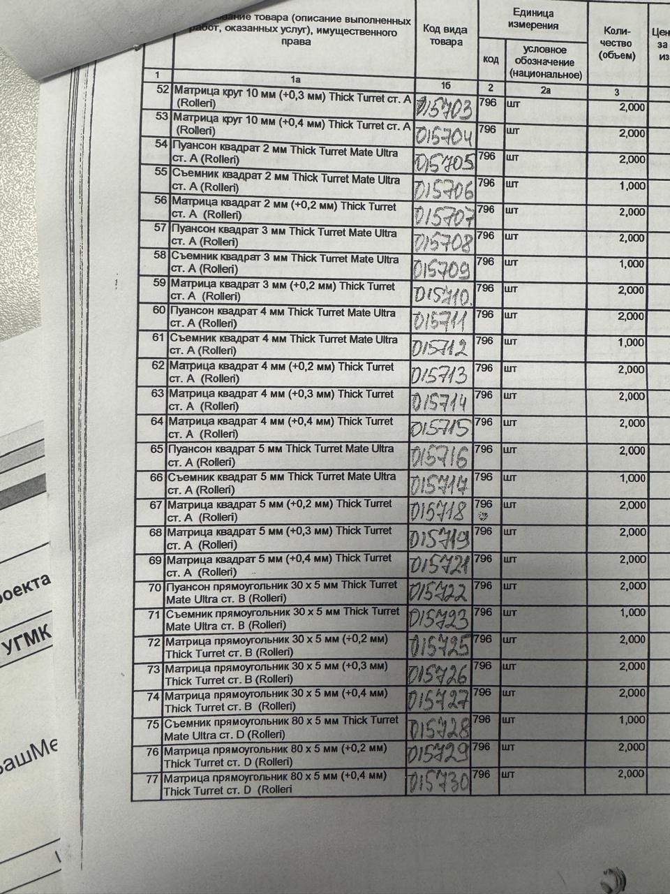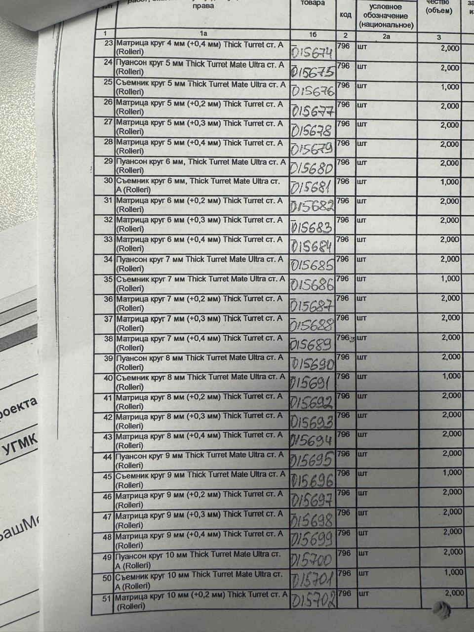 Инструмент для координатно-пробивных прессов и гибочных машин Trumpf, Hammerle, Boschert, Amada, Beyeler, Salvagnini