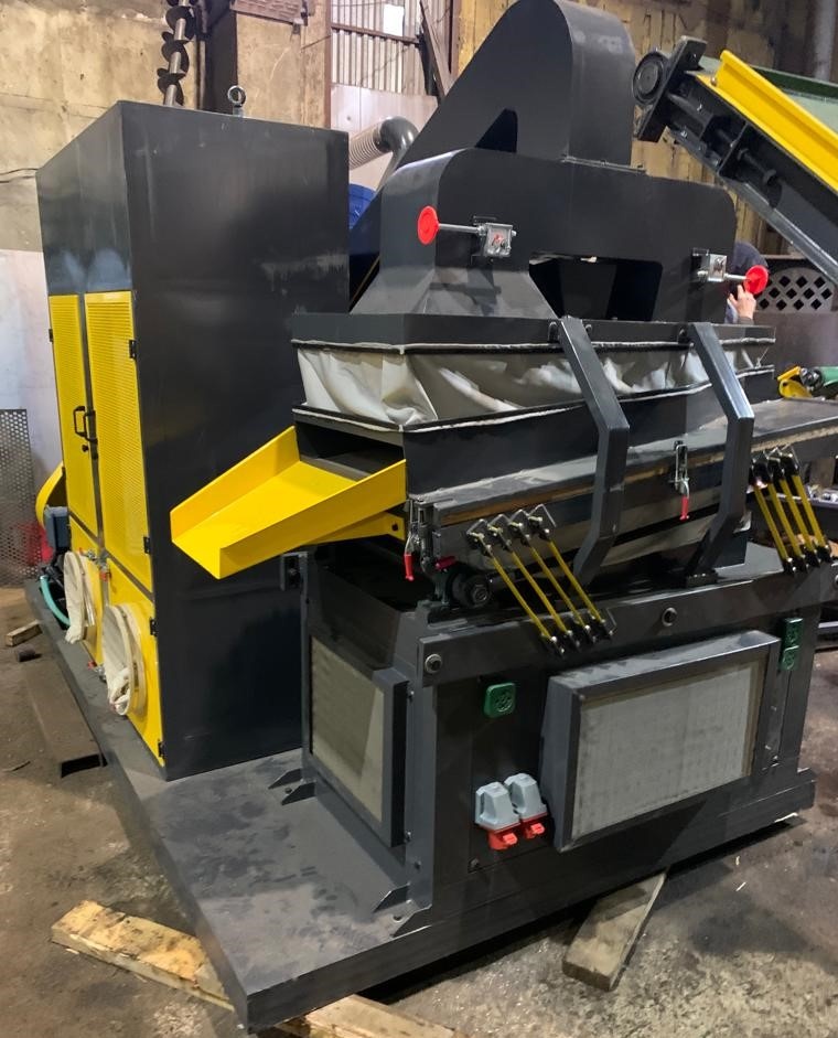 4. Материал подается на внутренний конвейер по которому материал поступает в вибро-сепаратор и продувается воздухом, чтобы отделить медные(алюминиевые) и пластиковые гранулы. Степень отделения меди составляет до 99%