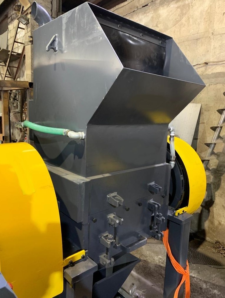 3. Второй конвейер подает кабель в дробилку где ножи измельчают кабель