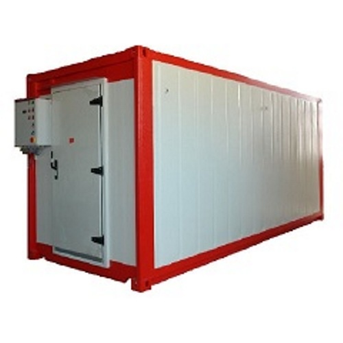Камера изготовлена по технологии модульного здания. С тыльной стороны модуля установлена холодильная установка (опционально модульная камера может быть доукомплектована дизель - генераторной станцией с баком для топлива). На потолке опционально устанавливаются подвесные пути (для подвешивания туш КРС). Холодильная камера предусмотрена для уличной эксплуатации в зимний период с диапазоном температур от +45 гр.С до -45 гр.C. Установлена система зимнего пуска KVR + NRD. Для эксплуатации в зимний период, опционально предусмотрена система автоматического подогрева камеры до Т=+25 гр.C. камера поставляется в полной готовности и заправлена фреоном. В машином отделении предусмотрена вентиляция в случае установки лизель генератора или подогревателя.