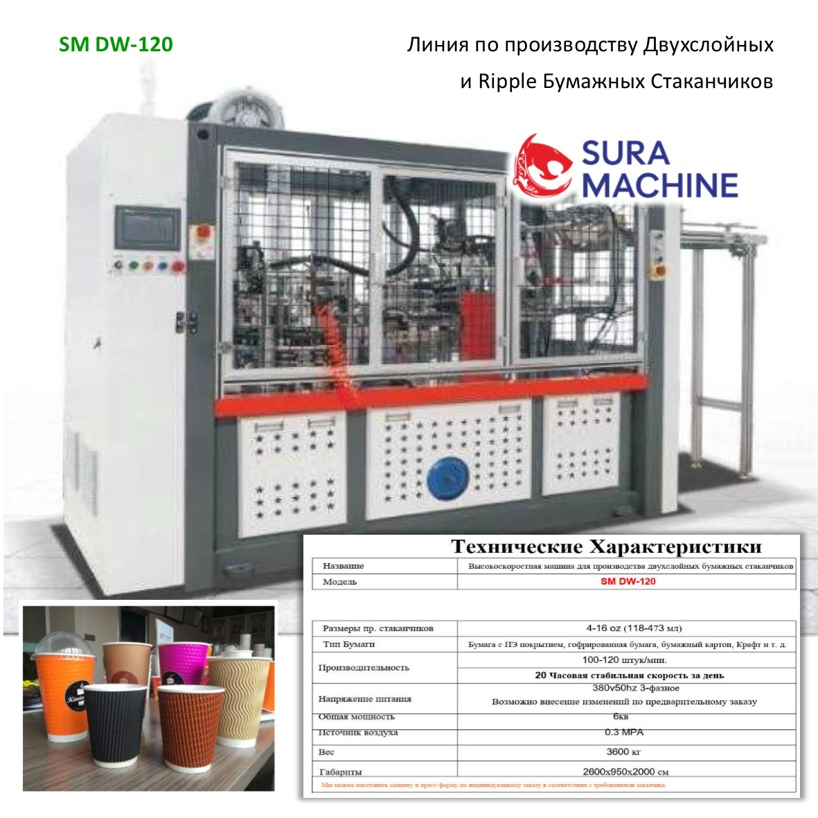 Линия По Производству Двухслойных Одноразовых Бумажных Стаканчиков Sura Machine SM-DW120