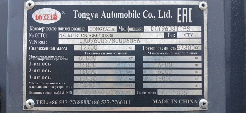 | Модель | CTY9603TDPS |