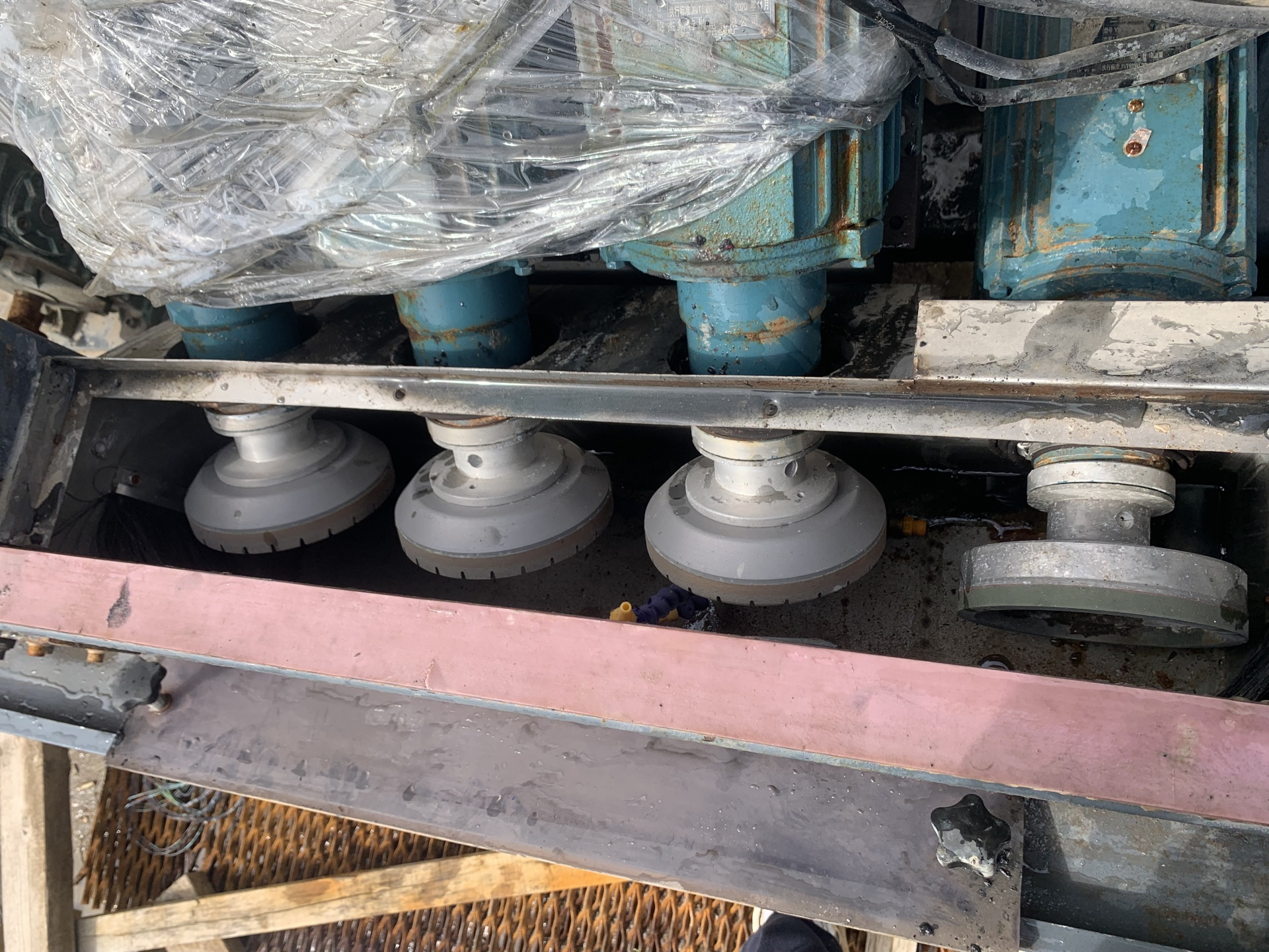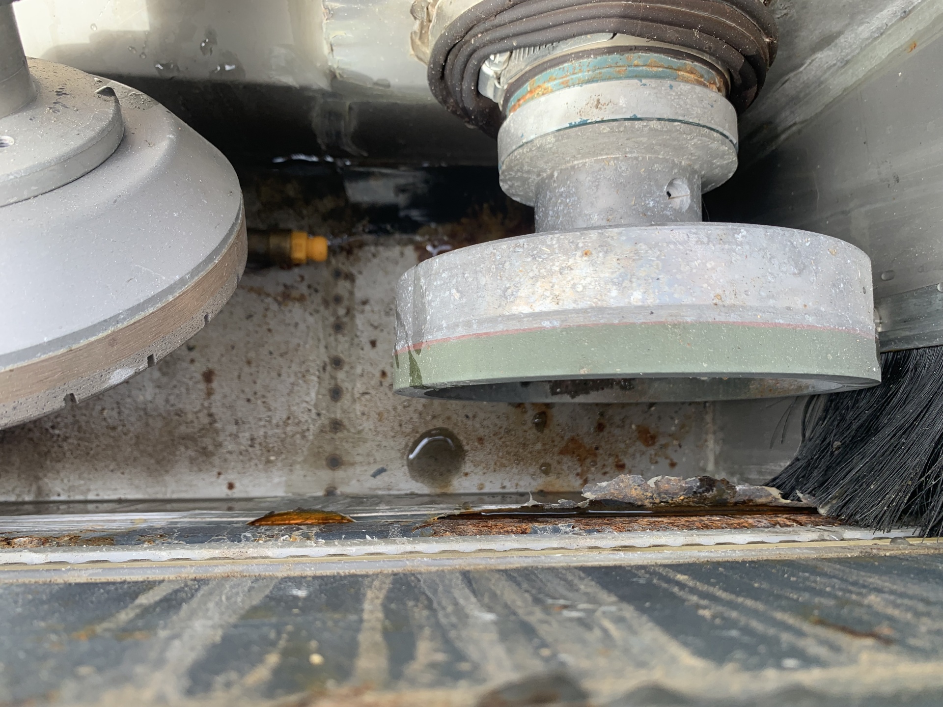 Станок для обработки кромки стекла, в рабочем состоянии.