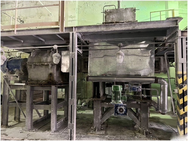 Готовый продукт выгружается с помощью выгрузочных лючков, которые установлены в нижней части корыта смесителя
