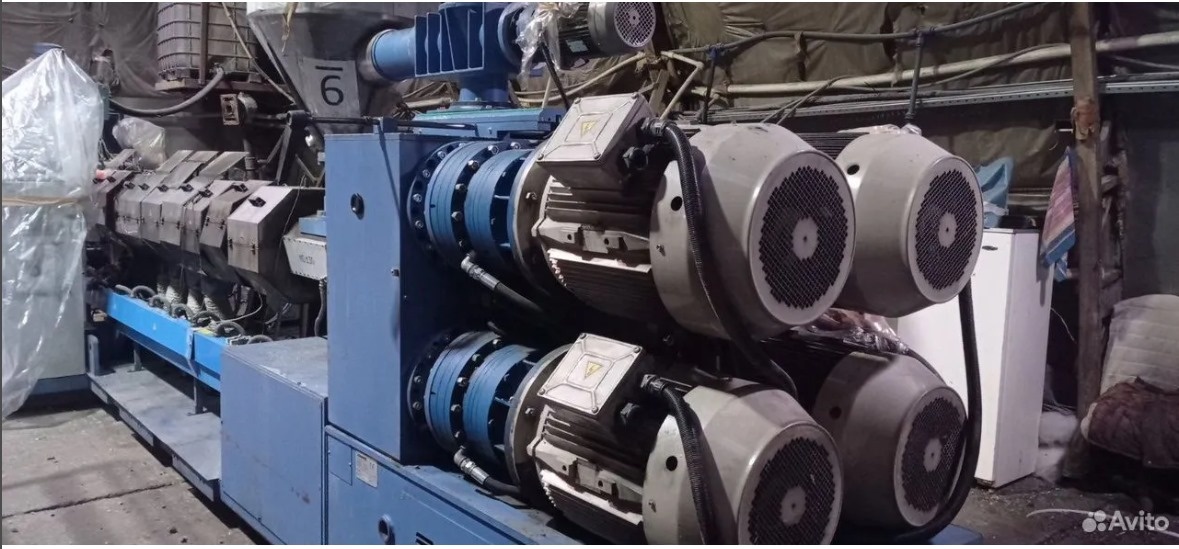 - экструдер со шнеками и цилиндрами вращающимися в противоположном направлении диам. 130 с зоной дегазации;