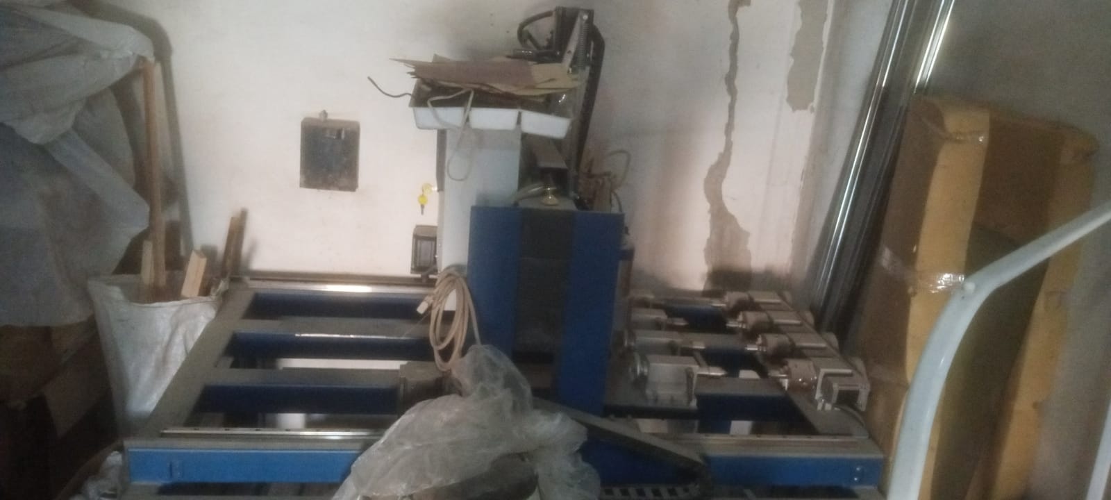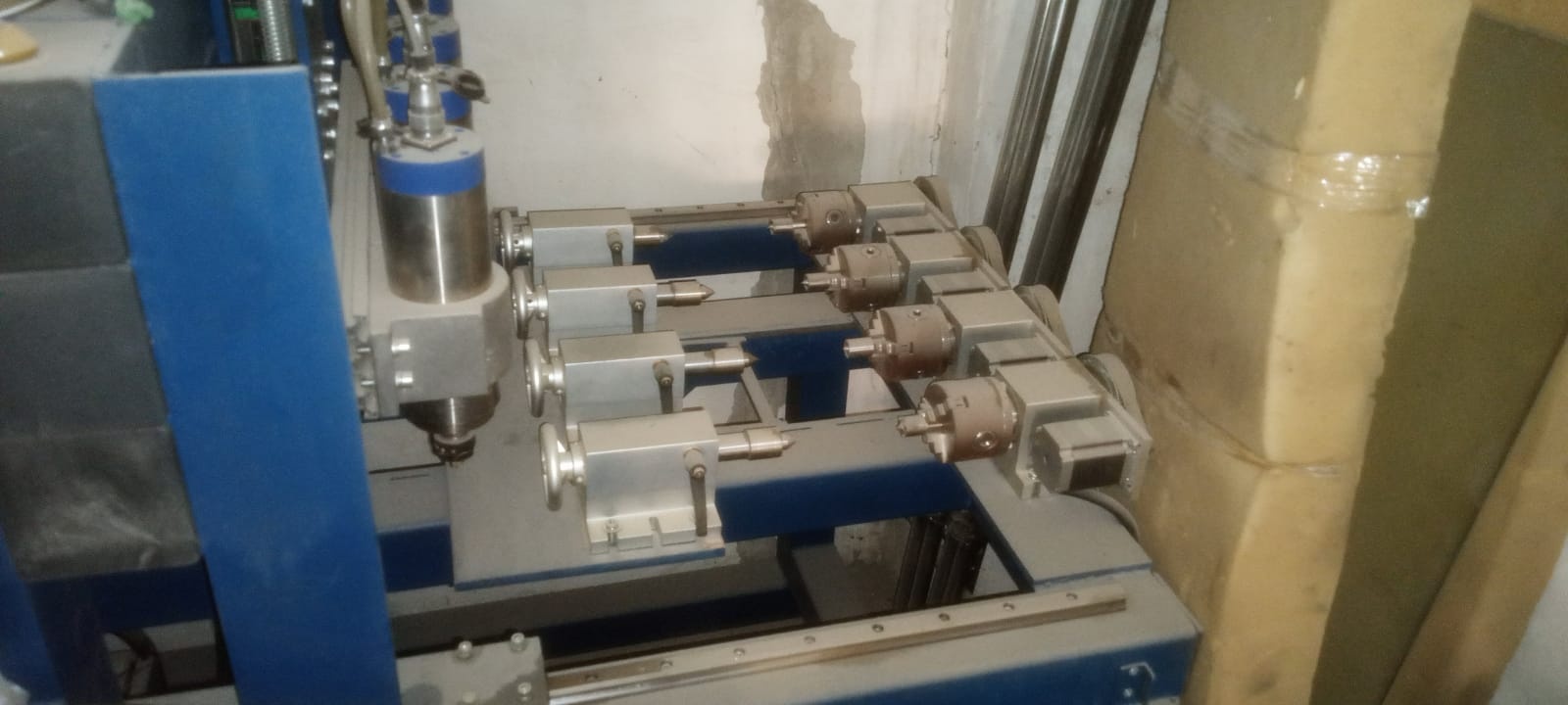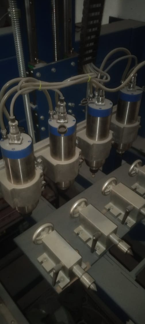 Рама 1600*1010, шпиндеди по 2,2кВт, 4 поворотные оси, охлаждение водяное, управляется с НЦ студио NC studio. В работе реально в районе 3 недель и то на двух шпинделях пробовали. Нам не подошёл. Износ 0%.