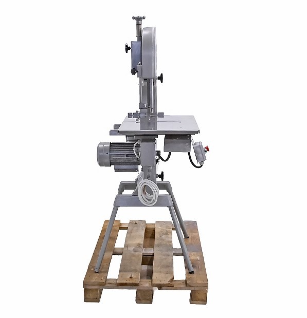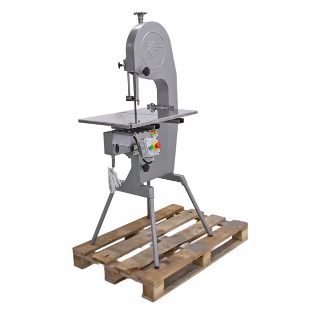 Пила ленточная Koneteollisuus Oy KT-325 используется на предприятиях пищевой промышленности и торговли для нарезки на куски свежего и замороженного мяса, рыбы и птицы. Модель с 1 скоростью оснащена подвижным столом и тормозным двигателем, благодаря которому режущее полотно останавливается мгновенно после отключения электропитания. Рабочее полотно, защитный кожух и кожух полотна выполнены из нержавеющей стали, корпус пилы и ножки - из алюминия.