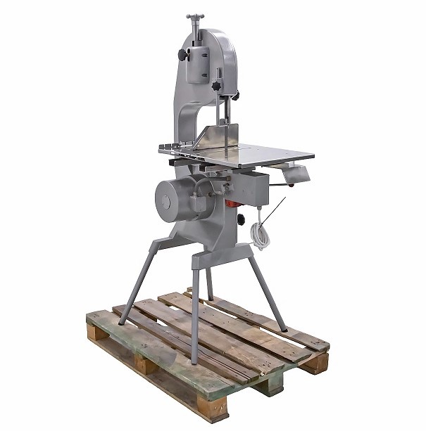 Пила ленточная Koneteollisuus Oy KT-325 используется на предприятиях пищевой промышленности и торговли для нарезки на куски свежего и замороженного мяса, рыбы и птицы. Модель с 1 скоростью оснащена подвижным столом и тормозным двигателем, благодаря которому режущее полотно останавливается мгновенно после отключения электропитания. Рабочее полотно, защитный кожух и кожух полотна выполнены из нержавеющей стали, корпус пилы и ножки - из алюминия.