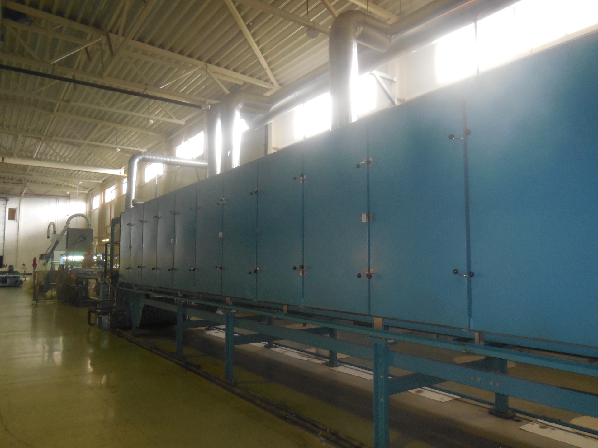 Линия по производству обоев проект WO 31543. Производство «Emerson and Renwick», Великобритания. Линия 2010 года постройки. 4 стойки ротарной печати 2 стойки совмещены с возможностью гравюрной печати. Сушильный канал 5-ти зонный, узел тиснения не в регистр. Система намотки и упаковки фирмы Frastran Великобритания (устаревшие но надежные модели) . На данной линии установлен узел намотки винилового проката, что является огромным плюсом в данных промышленных линиях. Может выпускать не только обои но и прокат.