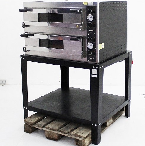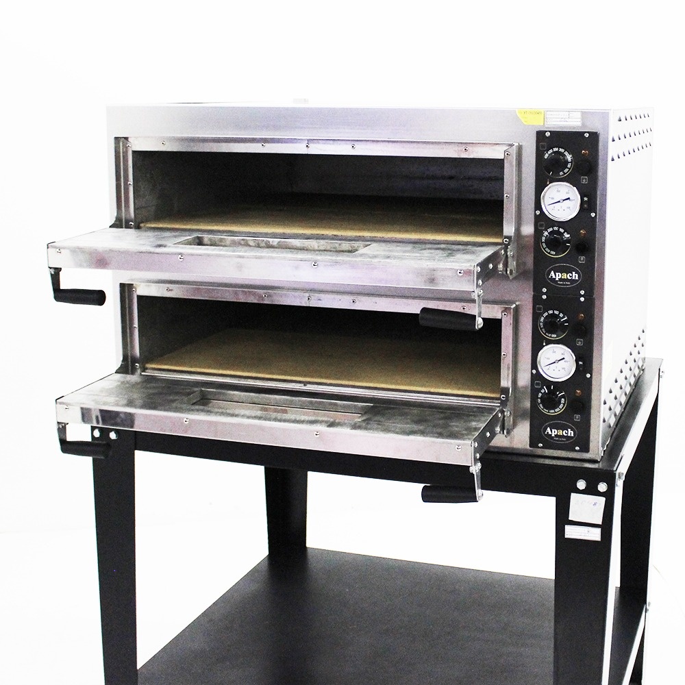 Профессиональная электрическая печь для пиццы Apach AMM44 позволяет выпекать за 1 цикл до 8 пицц диаметром до 35 см. 2 рабочих камеры с независимым управлением. Вместительность одной камеры – 4 пиццы. Рабочий температурный диапазон от +50 до +450 градусов. Время разогрева до рабочей температуры – 30-35 мин. Мощность – 9,6 кВт. Электромеханическая система управления ТЭНами. В конструкции используются 4 ТЭНа (2 верхних и 2 нижних) с раздельным управлением. Каждая из рабочих камер оснащена подсветкой. Лицевая панель выполнена из нержавеющей стали, боковые и задние панели - из окрашенной стали, рабочая камера - из стали с алюминиевым покрытием, под - из огнеупорного камня.