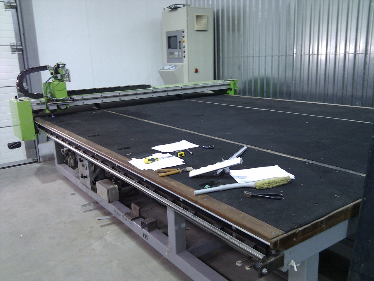 Стол снабжен воздушной подушкой. Управляемое оператором с монитора прецизионное оборудование резки стекла. Подача стекла на стол возможна методом свободного падения. Позиционирование стекла быстро