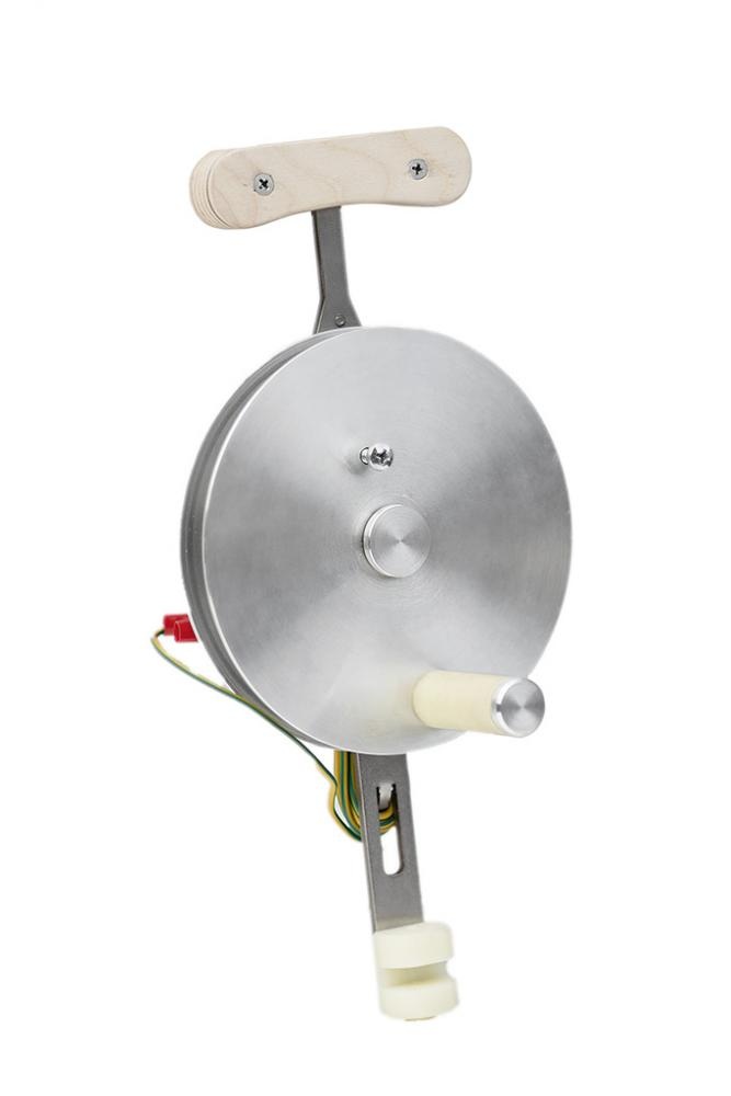 Ручная катушка( трос рулетка ) для пробоотборников выполнена из дюрали, каркас из нержавеющего сплава с удобной ручкой. На каркас намотан провод заземления с креплением типа "Крокодил". Заземнение и трос образуют неразрывную электрическую цепь для надежного заземления пробоотборника.