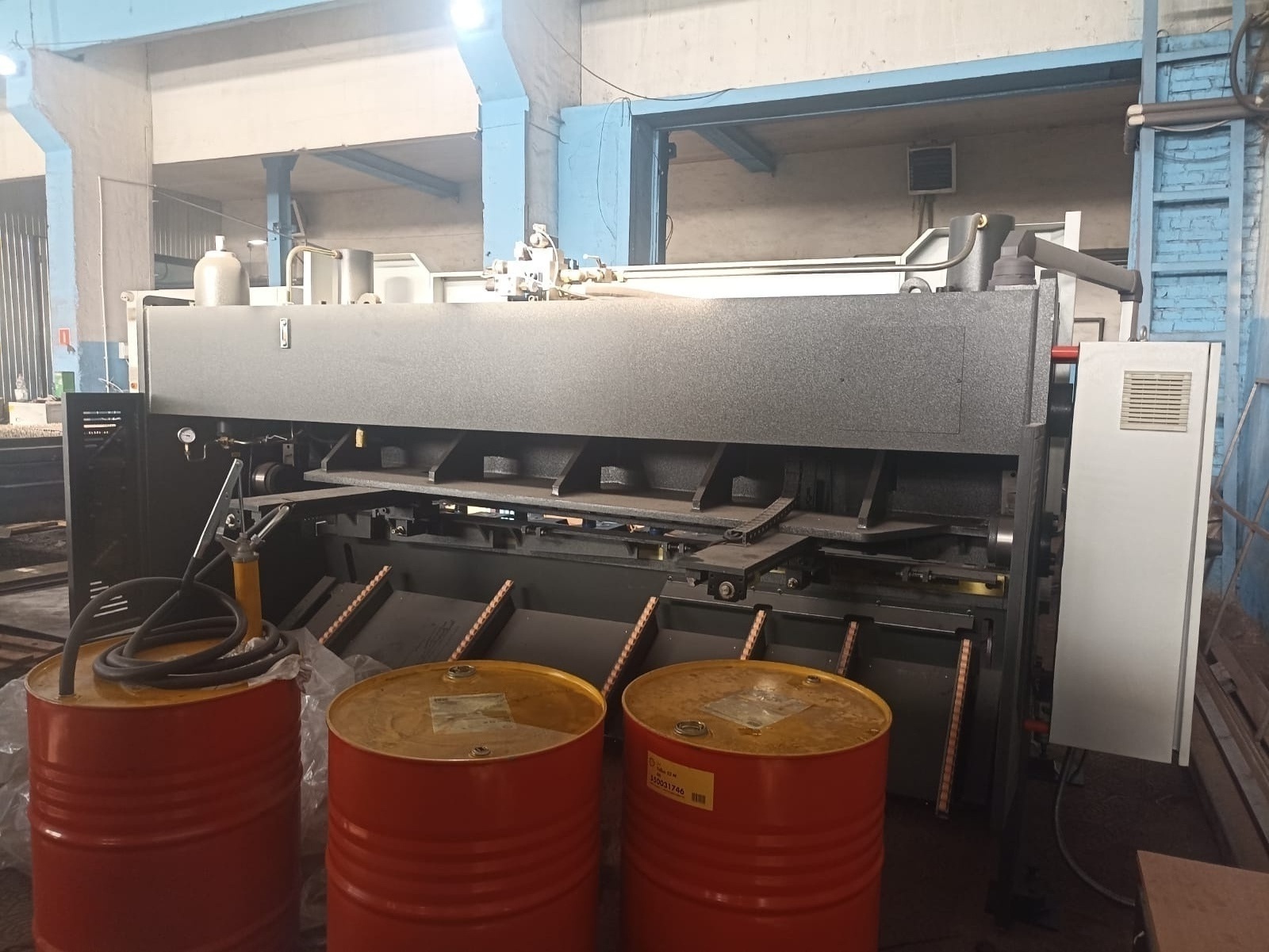 Технические характеристики: Модель - QC 11К 10х3200 Максимальная толщина листа (450 Н/мм2), мм (черн.) – 10 Максимальная толщина листа (700 Н/мм2), мм (нерж.) – 6 Максимальная толщина листа (250 Н/мм2), мм (алюм.) – 12 Минимальная толщина листа, мм – 0,5 Длина реза, мм – 3200 Угол наклона ножей, мм – 1-3 Кол-во ходов, ход/мин- 10 Перемещение заднего упора, мм – 5-750 Глубина горловины в боковых стойках, мм – 150 Габариты (ДхВхШ), мм – 3850х1900х1830 Мощность двигателя, кВт - 15 Масса, кг - 8000