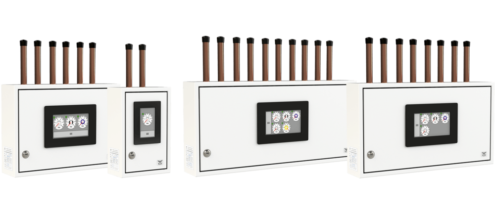 Контрольно-запорные устройства для медицинских газов российского производства Кадуцей (Caduceus) SU-1L, SU-2L, SU-3L, SU-4L, SU-5L и SU-6L с сенсорными LCD-дисплеем и системой сигнализации.