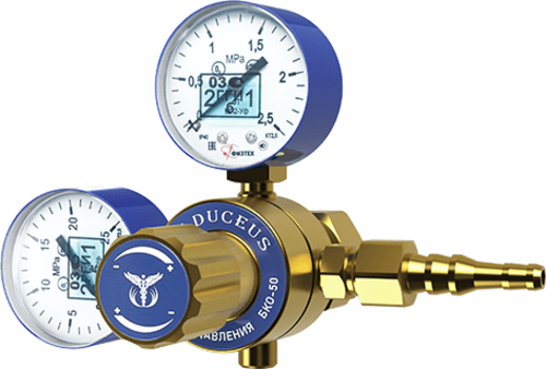 Редуктор кислородный CADUCEUS БКО-50 — это устройство, используемое для понижения давления кислорода, поступающего из баллона, до заданного значения и его автоматического поддержания на постоянном уровне.