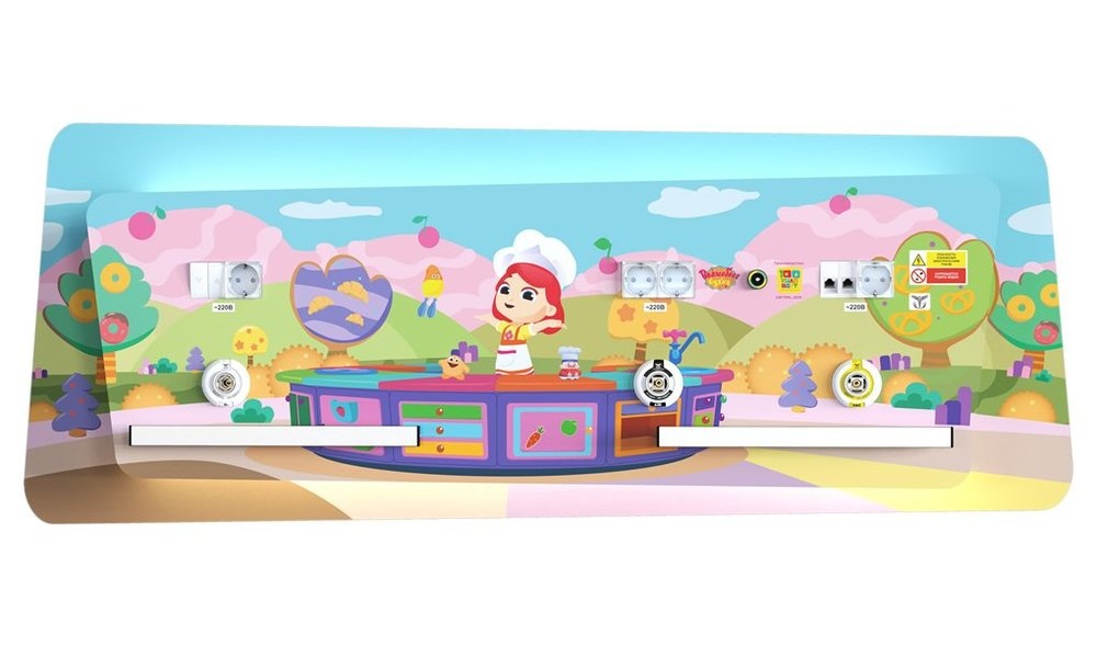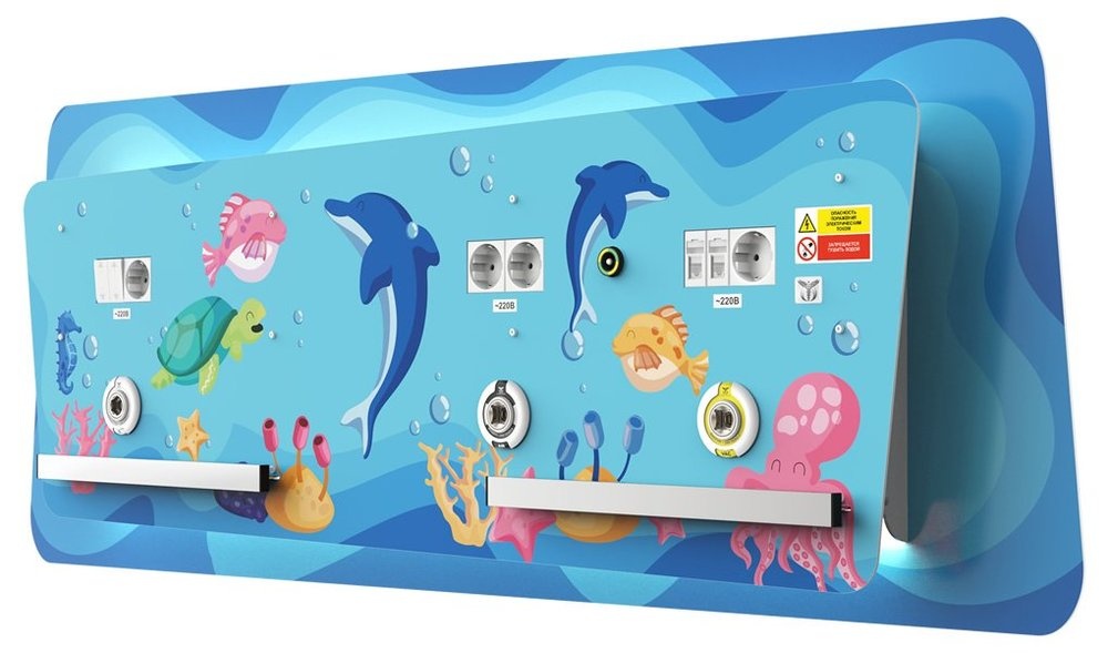 Корпус консоли выполнен с использованием дизайнерских элементов с детскими мотивами, а внутренние элементы системы изолированы и защищены от прямого контакта, что обеспечивает безопасность использования данного оборудования.