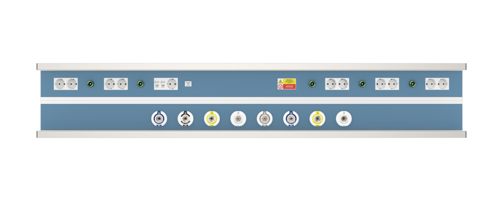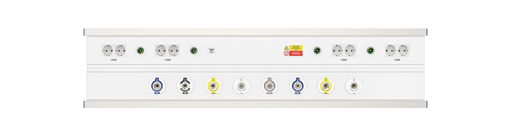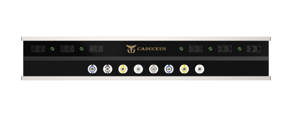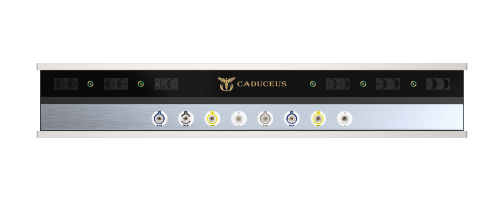 Настенные консоли CADUCEUS CN3-2 созданы для удобства медицинских работников и могут быть укомплектованы разъемами быстрого соединения медицинских газов в количестве до 8-ми по стандарту DIN 13260-2 (кислорода, вакуума, сжатого воздуха, закиси азота и углекислого газа), электрическими розетками 220В. Оснащение коммуникационными разъемами для связи «сестра-пациент» и передачи данных, а также двумя медицинскими рельсами, позволяющими устанавливать мониторы, светильники и другие приборы, дают возможность медицинским работникам вести наблюдение за состоянием пациента.