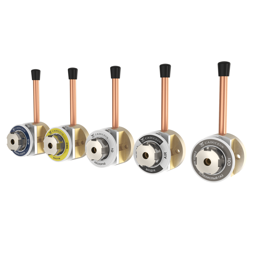 В линейке представлены клапаны для таких газов как: кислород, сжатый воздух, углекислый газ, вакуум, закись азота.