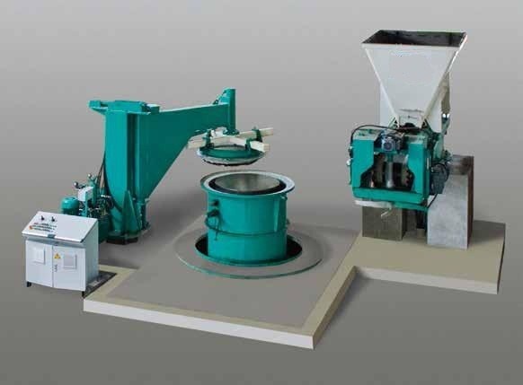 Трубы обычно расформовываются и транспортируются с помощью мостового крана. Прессовочное/качающее устройство устанавливается на поворотном рычаге. Для производства труб требуется только 1 оператор.
