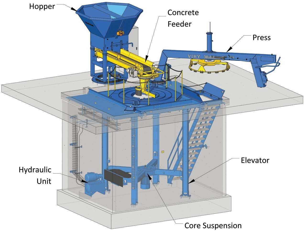 VIHY Multicast SCC 150 — это стационарная вибрационная машина для производства высококачественных бетонных труб диаметром до 1500 мм (60 дюймов)