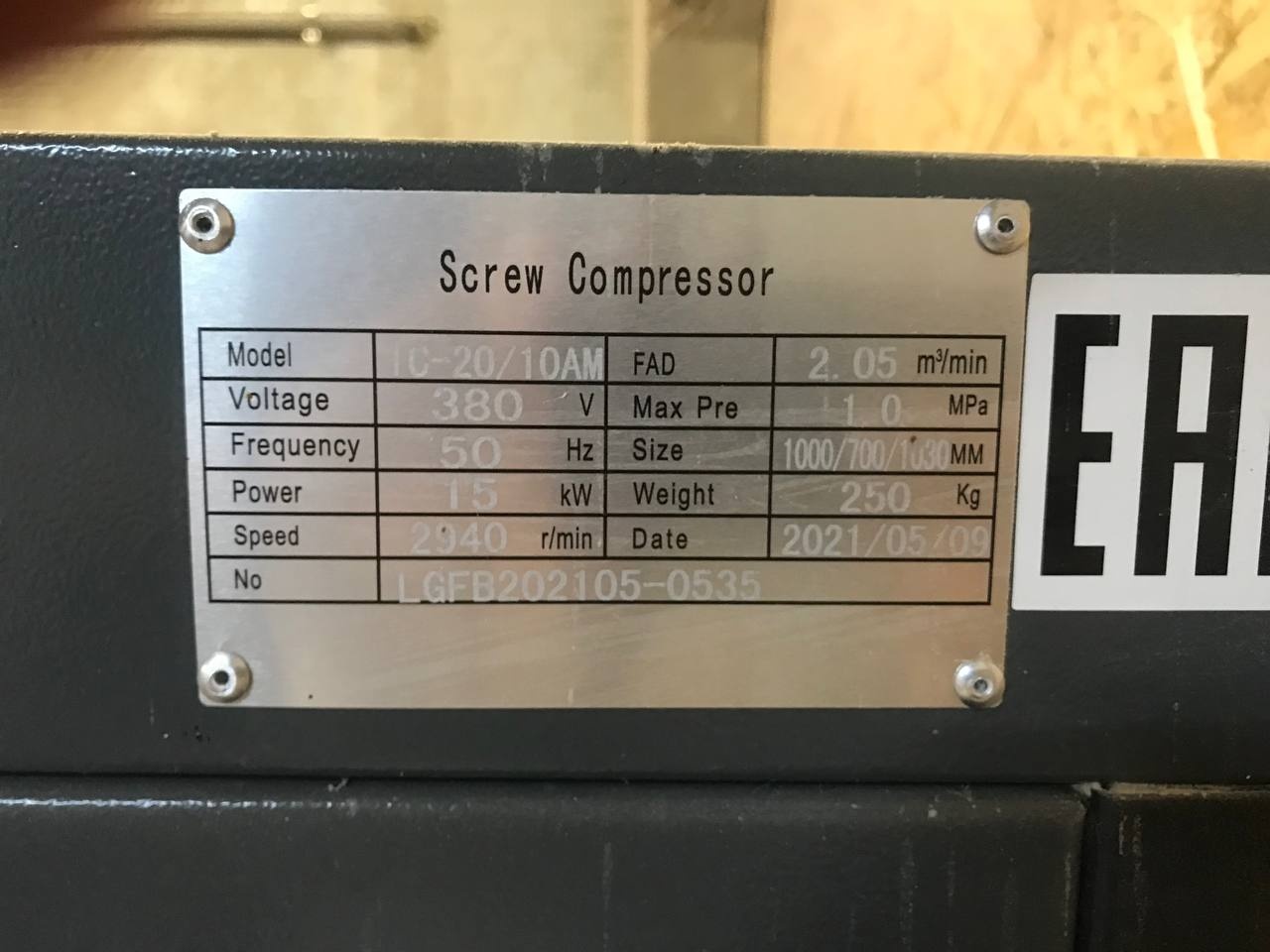 Продаётся винтовой компрессор IC-20-10 AM — надёжное решение для промышленного и сервисного использования