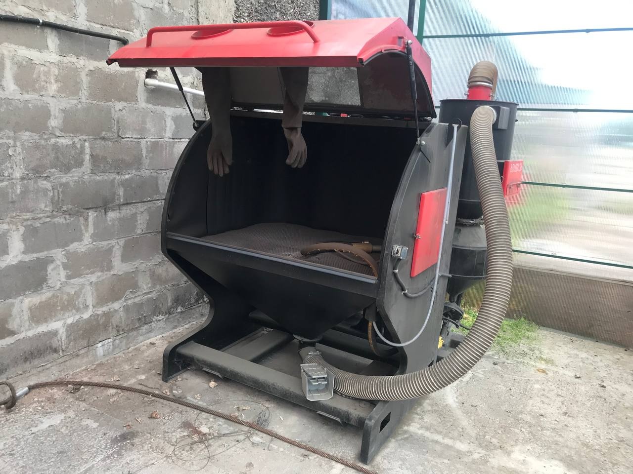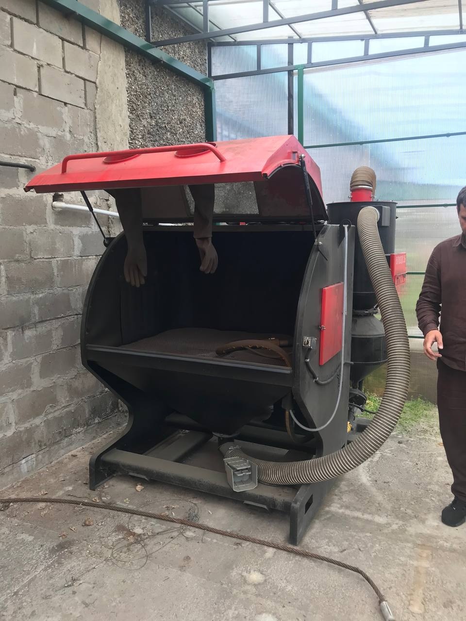 Оборудование полностью укомплектовано: в наличии сопла, перчатки, пистолет для подачи абразива и система рециркуляции. Камера находится в хорошем техническом состоянии, готова к немедленному запуску.