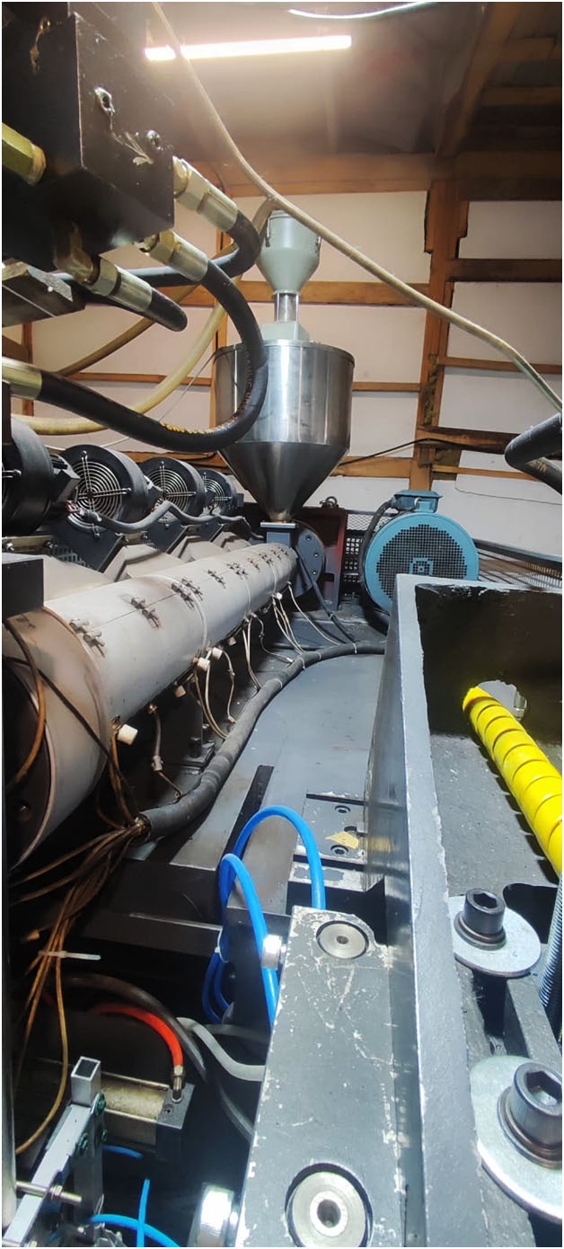 Экструдер:шнек 80 мм. Мощность нагрева 10,8 кВт. Производительность на ПНД 100 кг/ч.