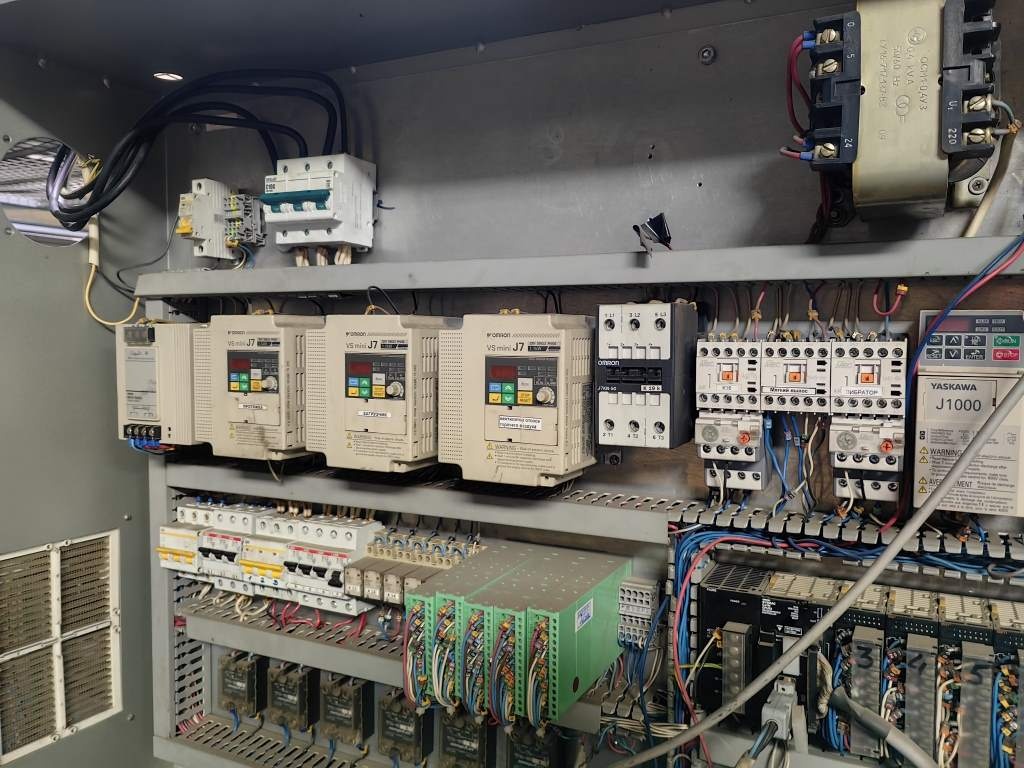 ПЛК и все электронная база Omron (Япония). Экран управления меняли. Оригинальный маленький был случайно разбит, заводские специалисты поставили 2 года назад новый большой сенсорный экран (см фото), заодно обновили ПО. Меняли ресивер высокого давления в 2019г. Стоит свежий аналогичный оригинальному. Есть Паспорт и инструкция по эксплуатации в бумажном и электронном виде. Есть все актуальные электросхемы в электронном виде.