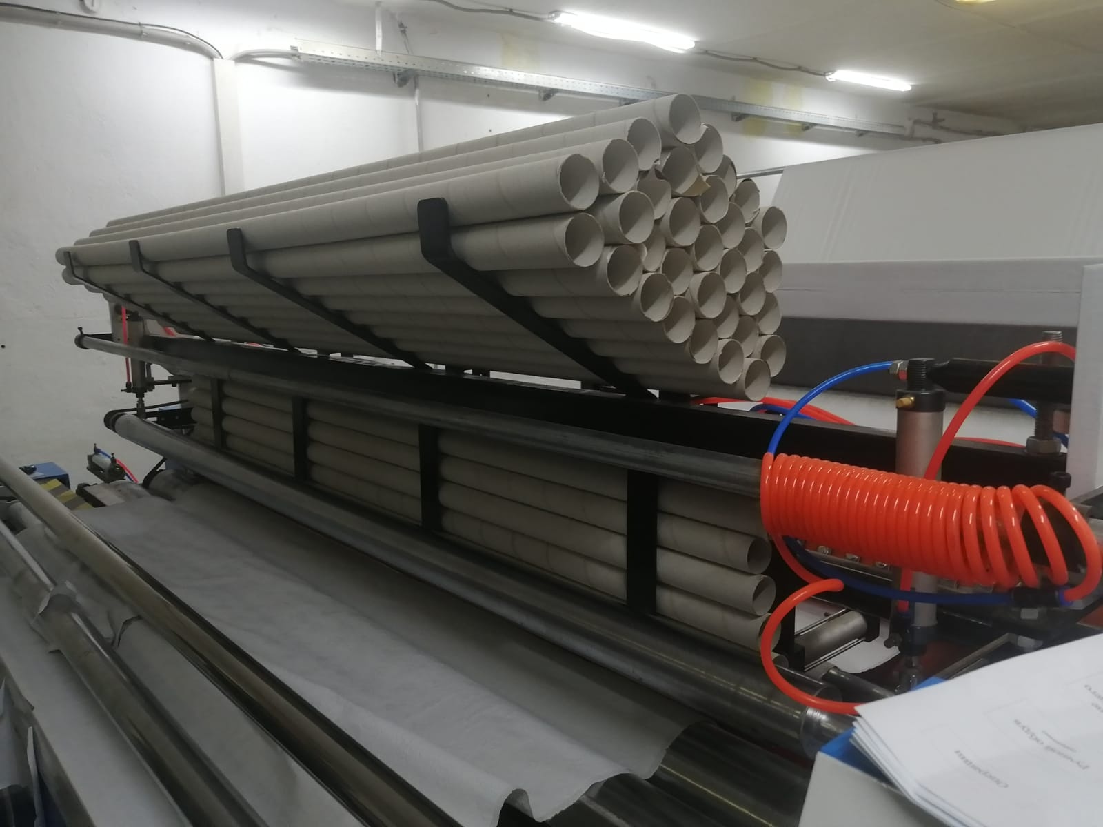 Ширина бумажной основы до 2200мм. Внутренний диаметр втулки бумажной основы 76мм. Пульт управления станка с сенсорным экраном.