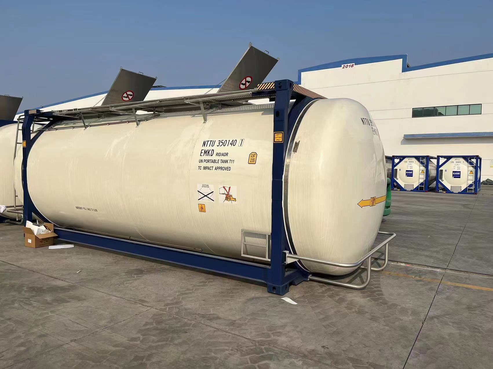 | Номер инструкции ООН | UN Т11, переносной , с изоляцией и паровым обогревом, с 3-мя съемными горизонтальными волногасителями , перекрывающими 50% от поперечного профиля емкости |