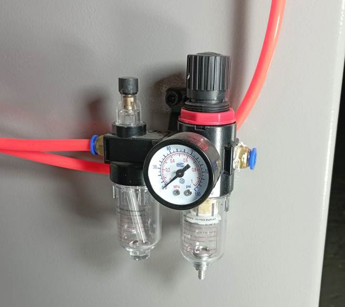 - Два пневмоцилиндра надёжно фиксируют заготовки.Пневмоцилиндрыимеют возможность точной настройки на различные толщины.