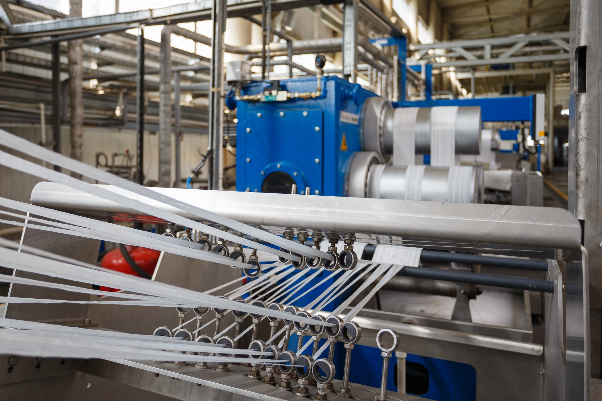 - линия вытяжки выполняет вытягивание, замасливание, сушку, термофиксацию, резку, упаковку в кипы;
