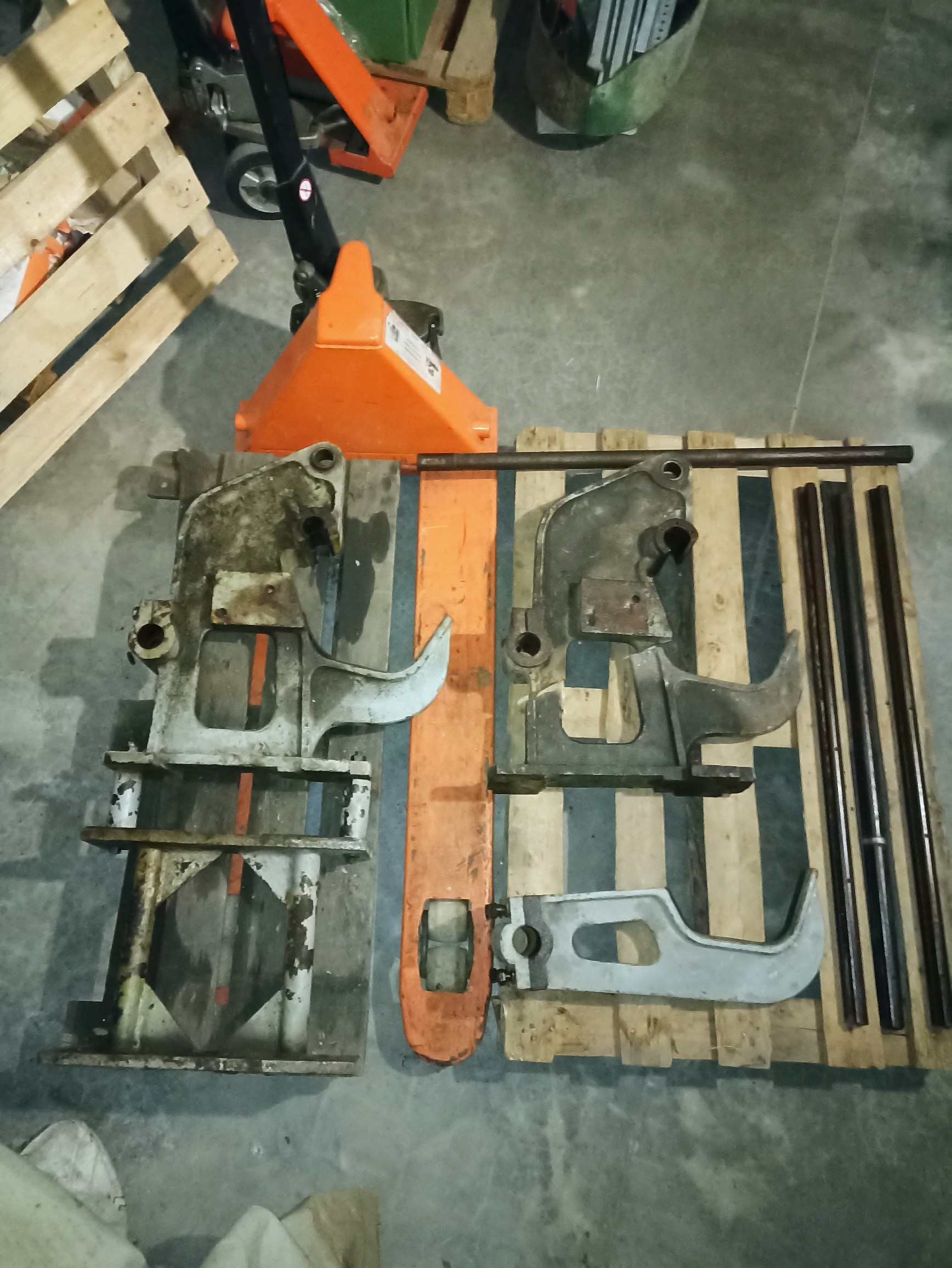 Дополнительно отдам один треснутый клык и штанги крепежные стоек от приемного лотка на фото.