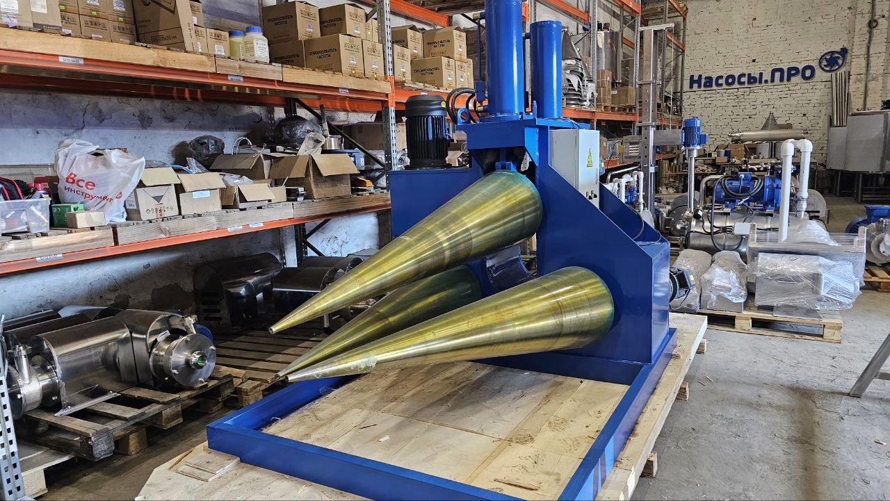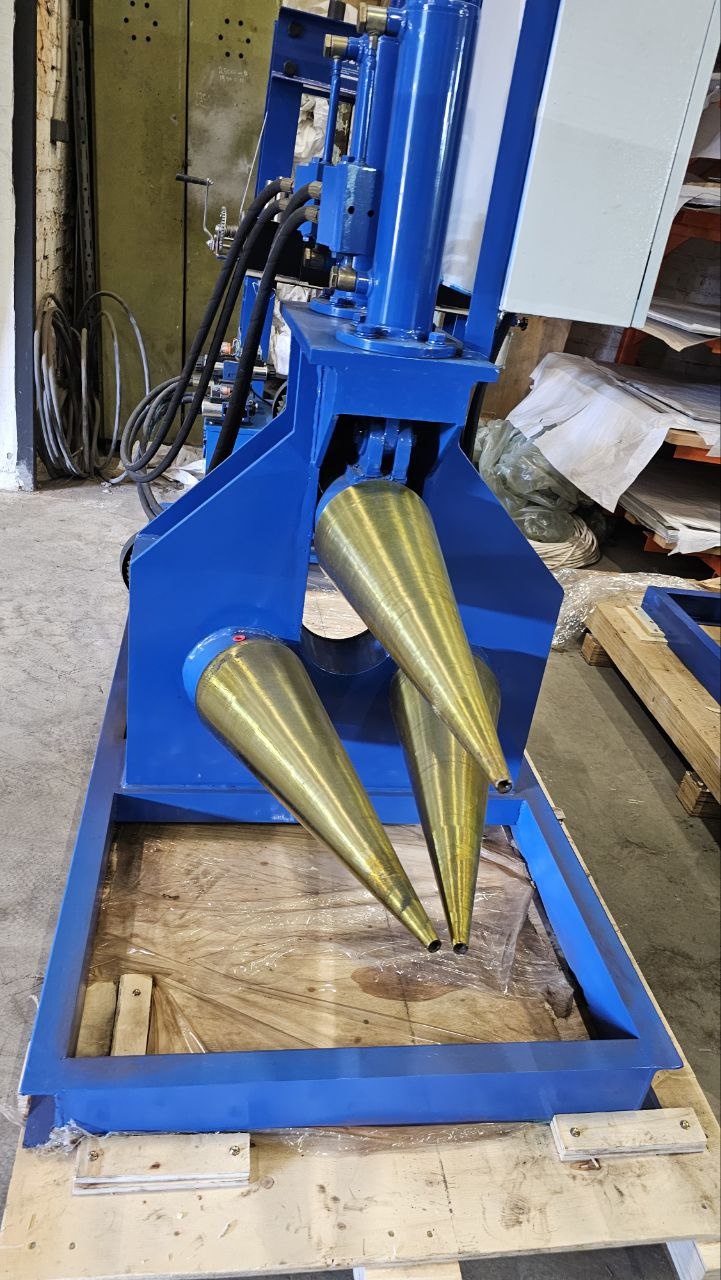 Вальцы конические электрогидравлические для быстрой прокатки конических обечаек (конусов) с узким горлышком, конических переходов, донышек, ЦКТ и т.д. Конуса получаются с идеальной геометрией (смотрите фото). В комплекте пульт управления.