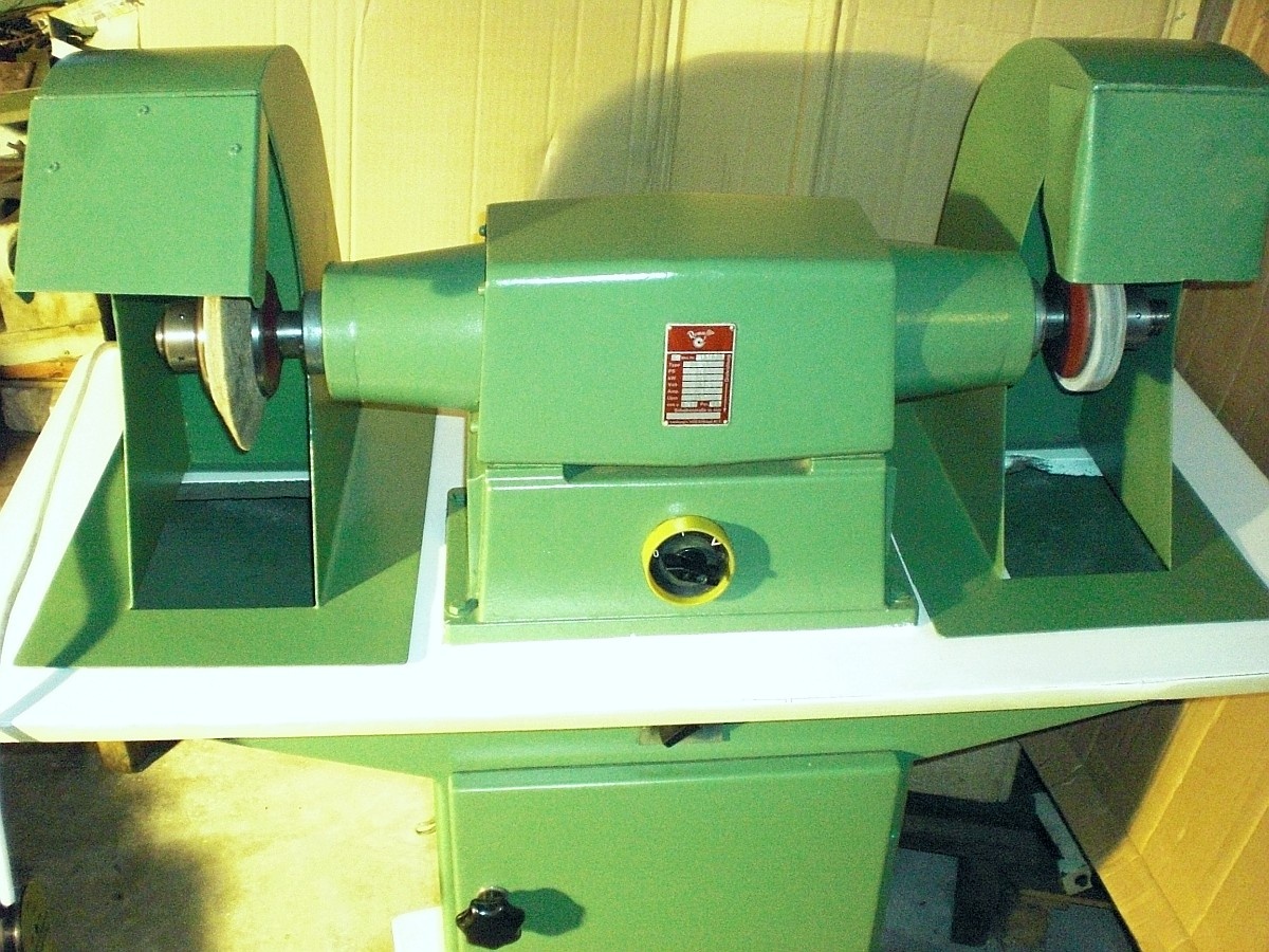 Специализированный низкооборотный станок для безопасной полировки большими кругами изделий из металлов и пластиков, нержавейка, латунь, бронза, медных, алюминиевых, нейзильбер, мельхиор, ювелирка, антиквариат, ножи, дверные ручки, фурнитура, небольшие корпусные детали и прочее.