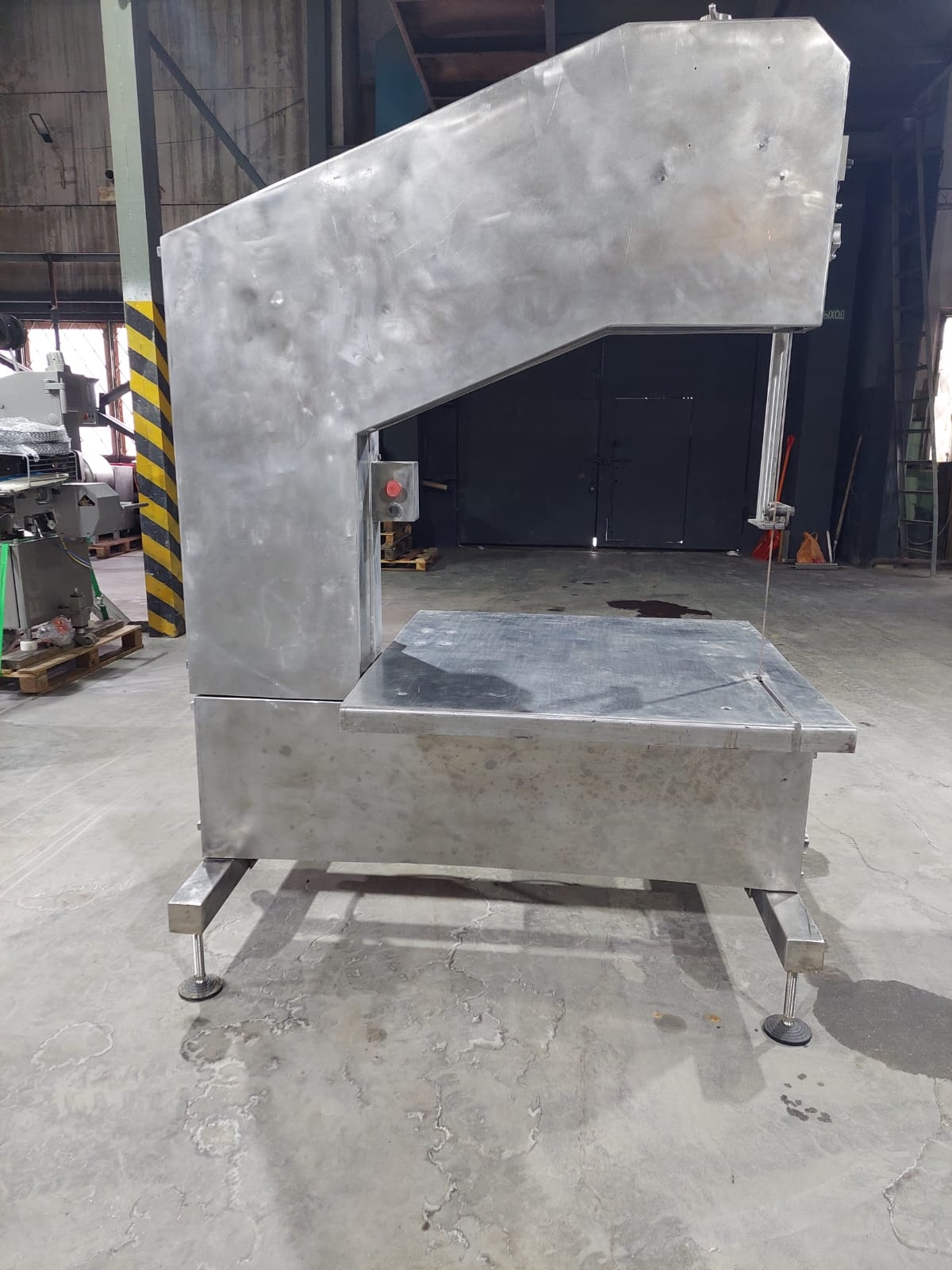 Разработана для пищевой промышленности и предназначена для распиловки крупной продукции. С ее помощью осуществляется нарезка всех видов замороженного, охлажденного либо свежего мяса на ровные кусочки, распил мяса на кости.