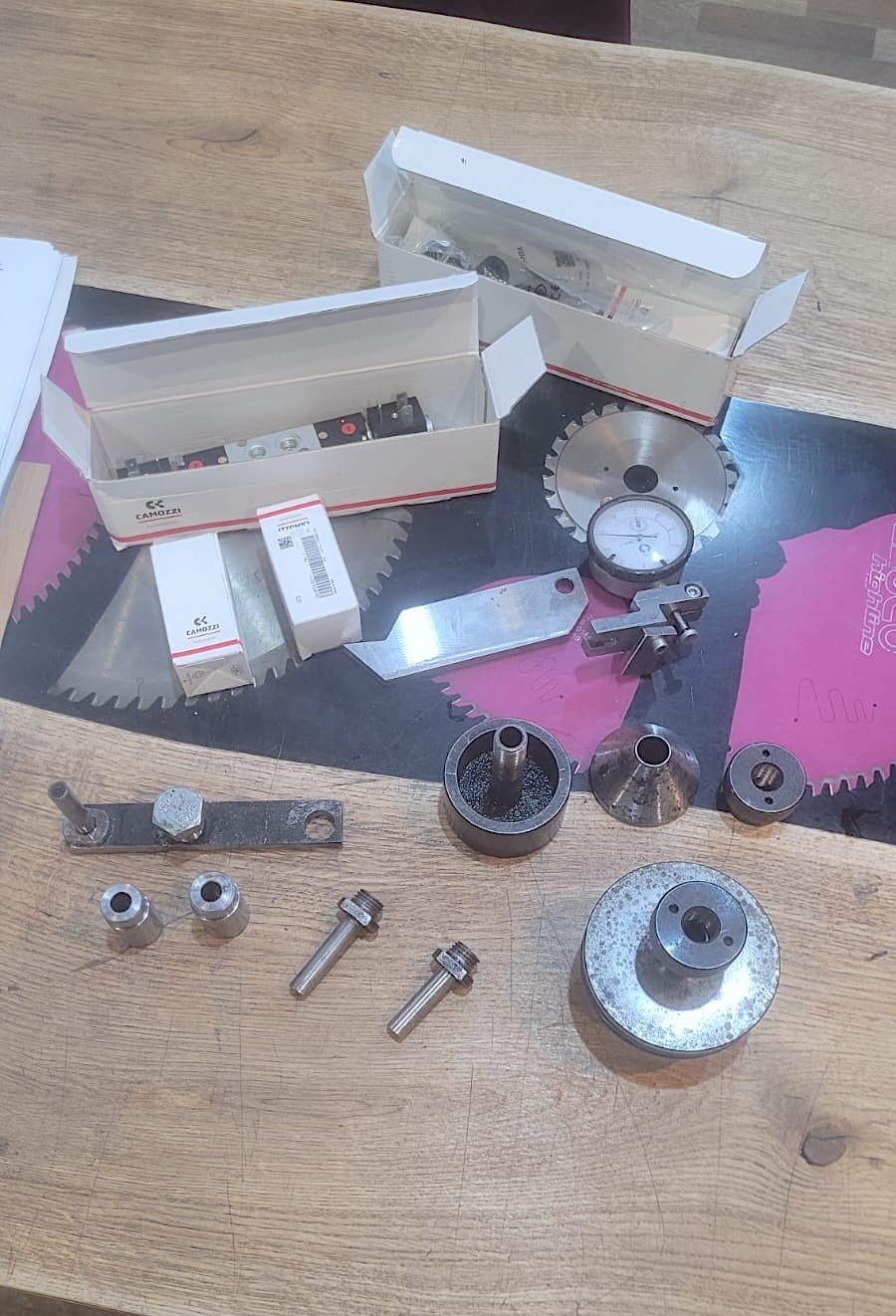 Комплектация: запасной комплект кругов, приспособления для настройки, оправки для пил, в том числе подрезных,