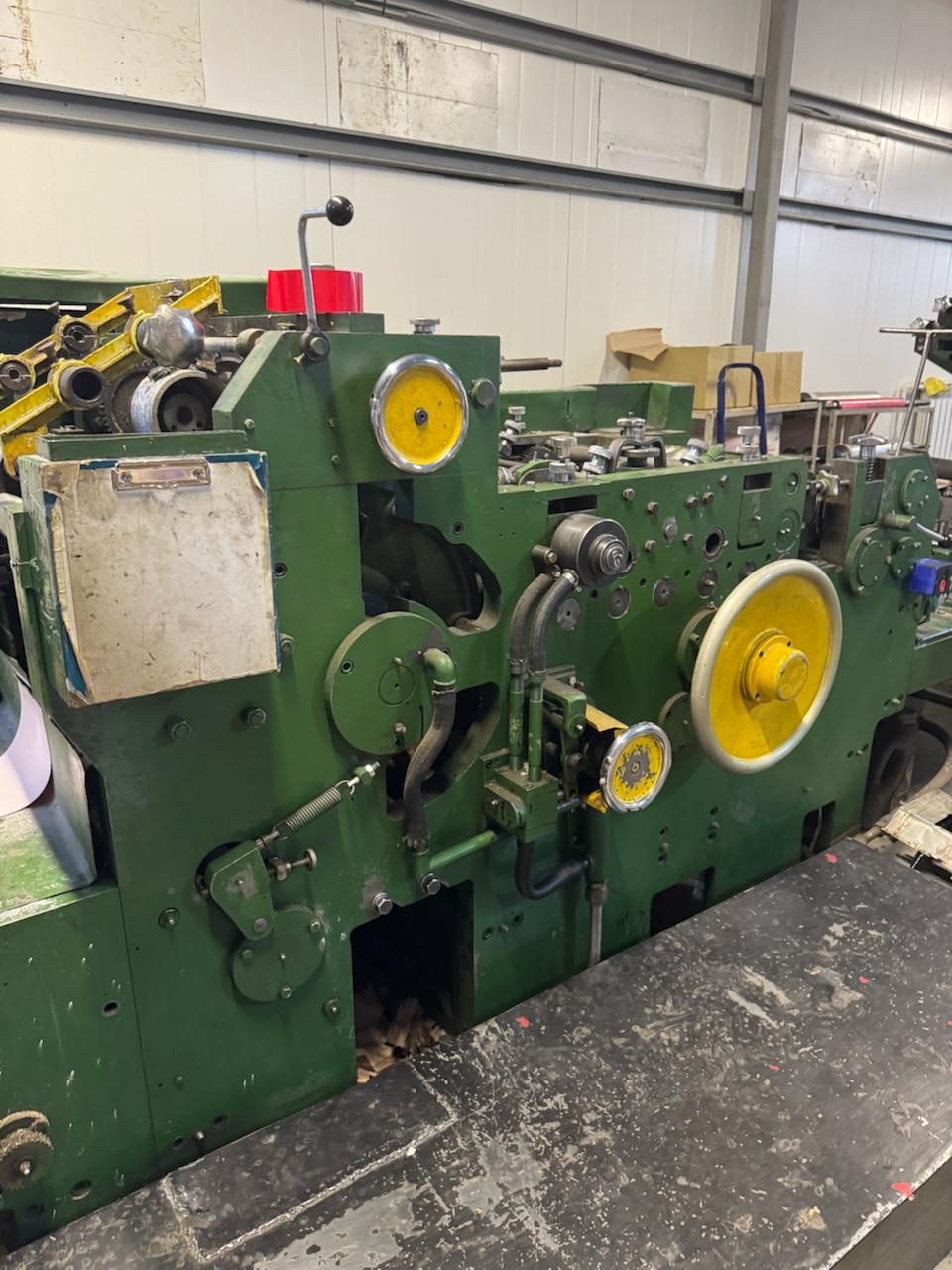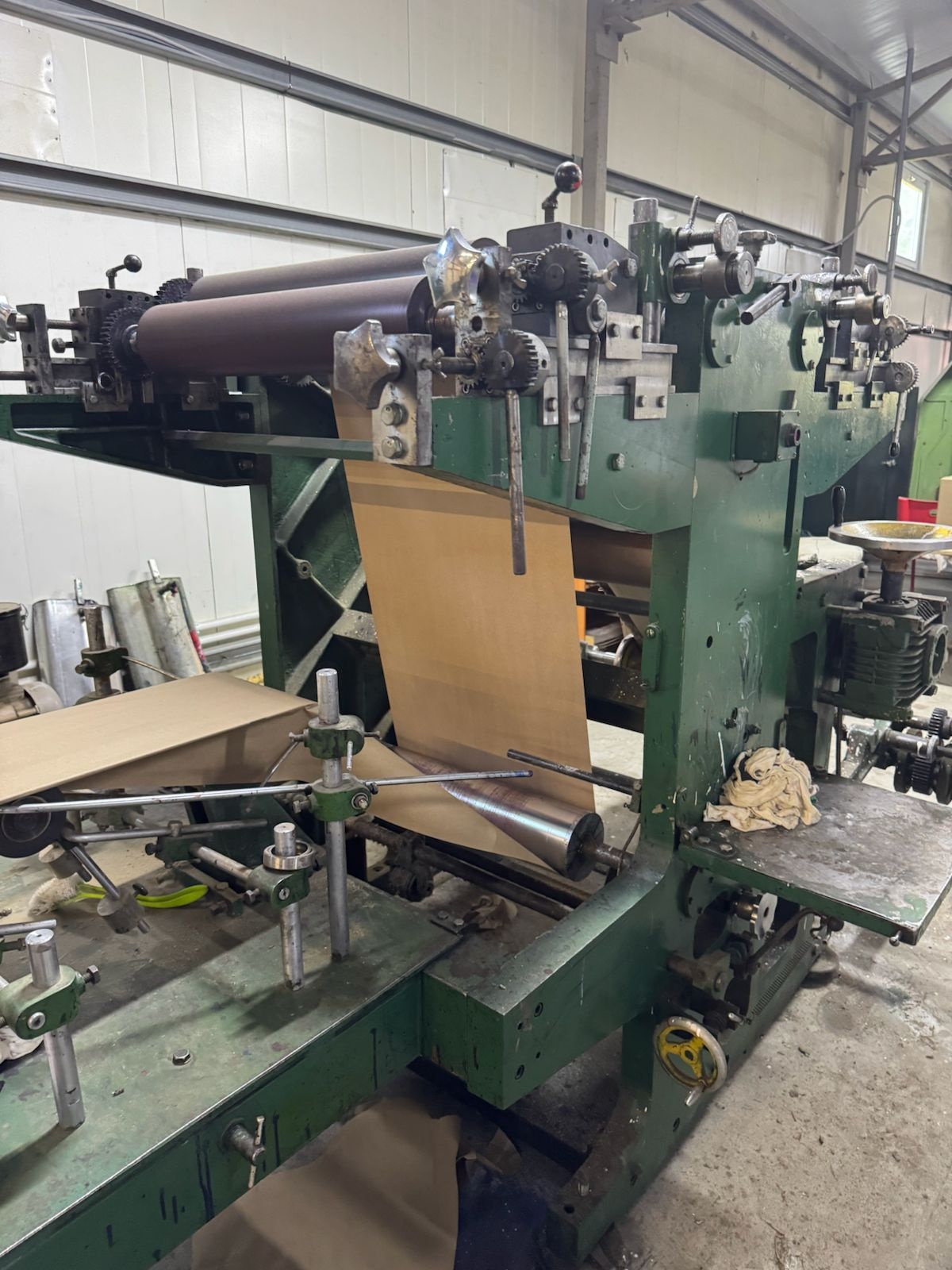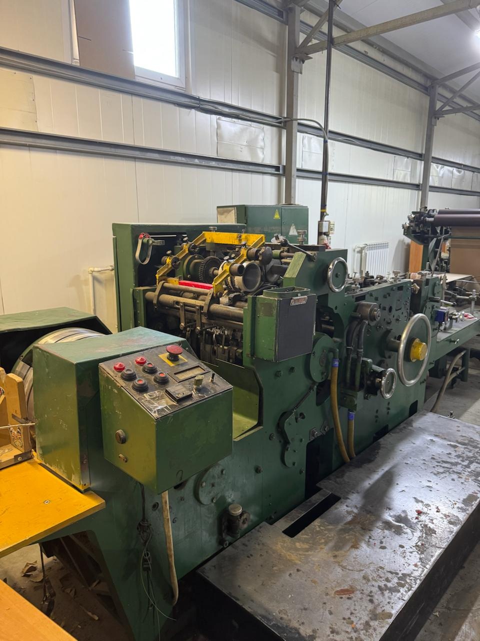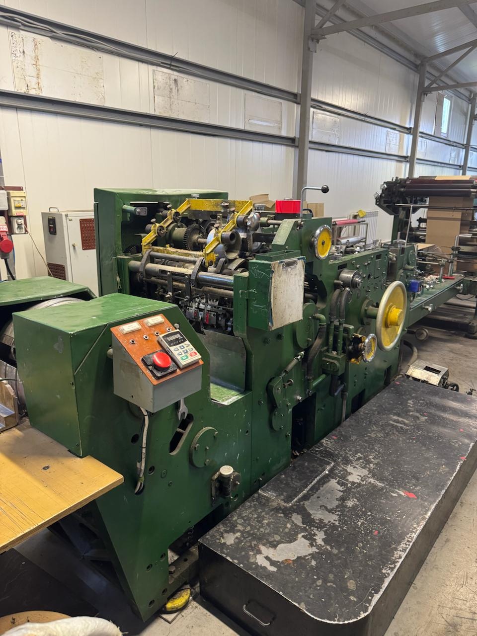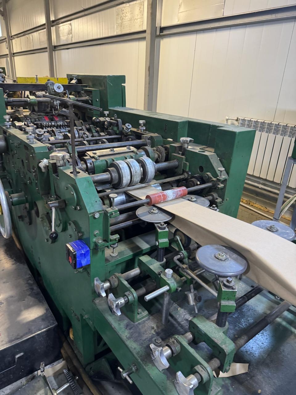 Оборудование для производства бумажных пакетов.Автомат пакетоделательный марки АПЖ-А5 предназначен для производства бумажных пакетов с прямоугольным дном различных типоразмеров (0,5,1,2,3 и 5кг), европейского стандарта, а также пакетов из металлизированной бумаги (кофе, чай). Автомат оборудован 2-х цветной печатью. Размеры выпускаемых пакетов могут изменяться в следующем диапазоне: ширина пакетов от 90 до 185 мм, ширина дна от 62 до 120 мм, высота пакета от 170 до 385 мм. Производительность автомата составляет до 160 пакетов в минуту в зависимости от размера пакетов. Габариты: Длина:6700 мм Ширина:1700 мм Высота:1800 мм Площадь:10,5 м2 Масса:5800 кг Производительность техническая:До 160 пакетов в мин. Общая установочная мощность:7,3 кВт Диаметр рулона бумаги: 340-1060 мм Уровень звука на рабочем месте:80-83 дБл Флексопечать :2 цвета Применяемые материал: Крафтбумага мешочная, белёная различных отечественных и зарубежных производителей плотностью от 60 до 120 r/m2 Обслуживающий персонал:2 человека: наладчик и укладчик.