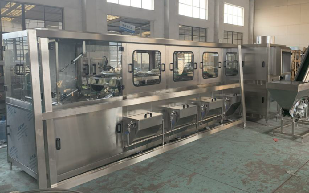 Автоматическое оборудование для линии розлива питьевой воды в ПЭТ тару объемом 19 л, производительностью до 900 бутылок в час.