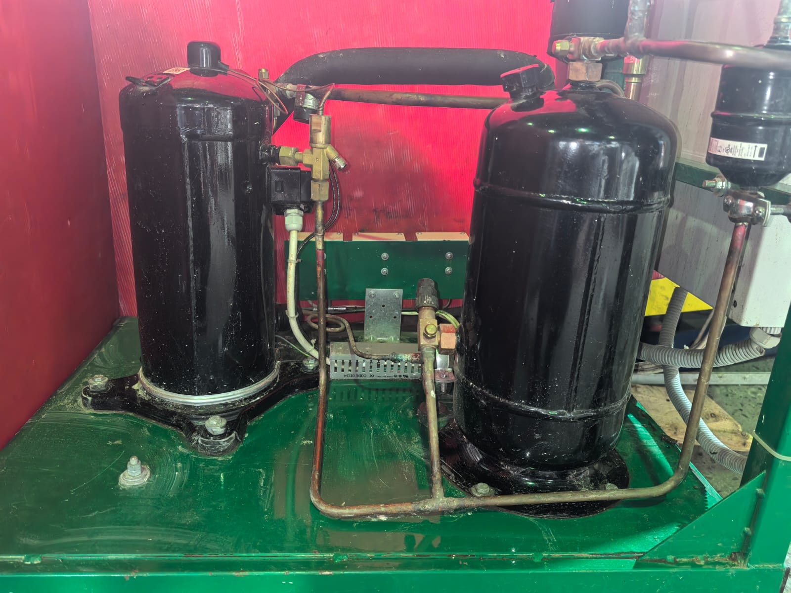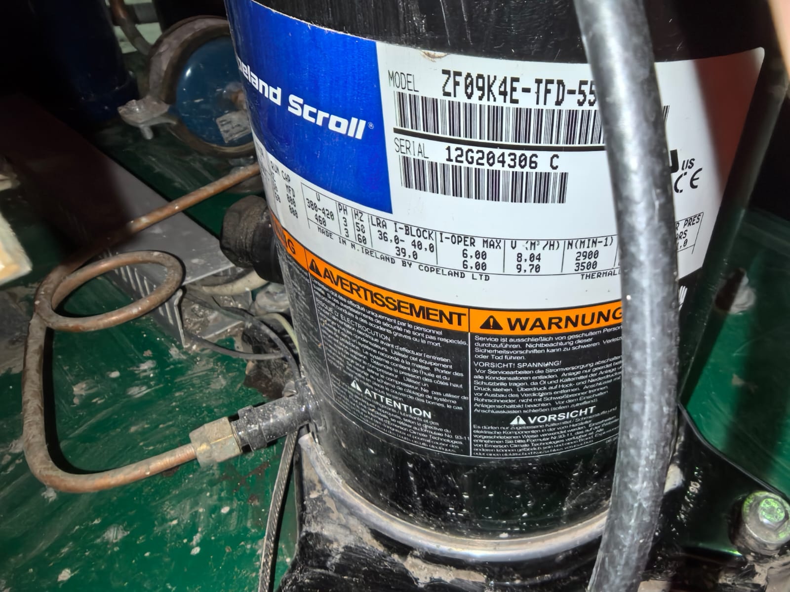 Сердце агрегата: Полугерметичный винтовой (спиральный) компрессор Copeland ZF-09 на хладагенте R-404A. Встроенная защита двигателя.