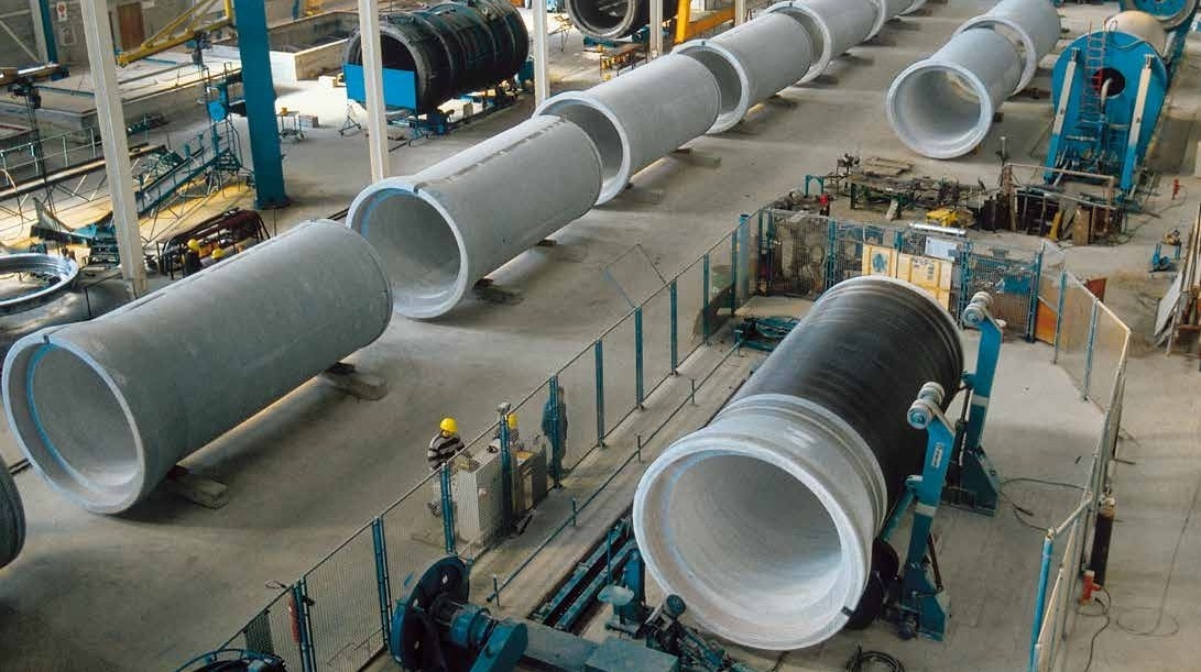 Предварительно напряженные бетонные цилиндрические трубы (PCCP) и предварительно напряженные бетонные центробежные трубы (PCSP).